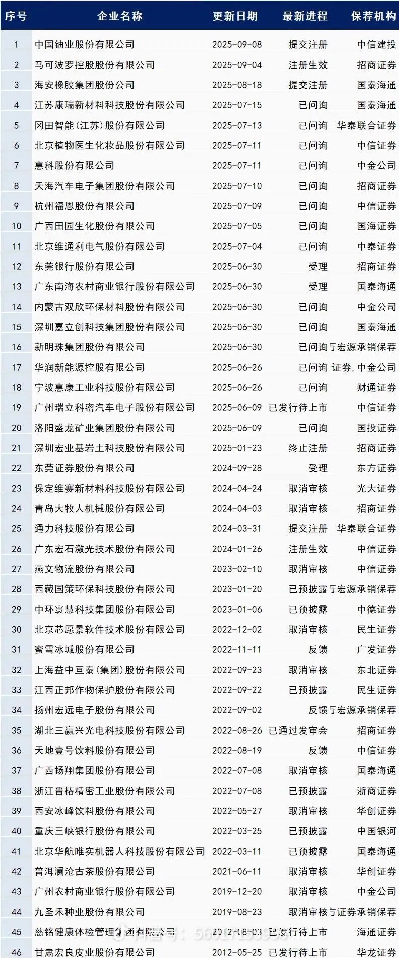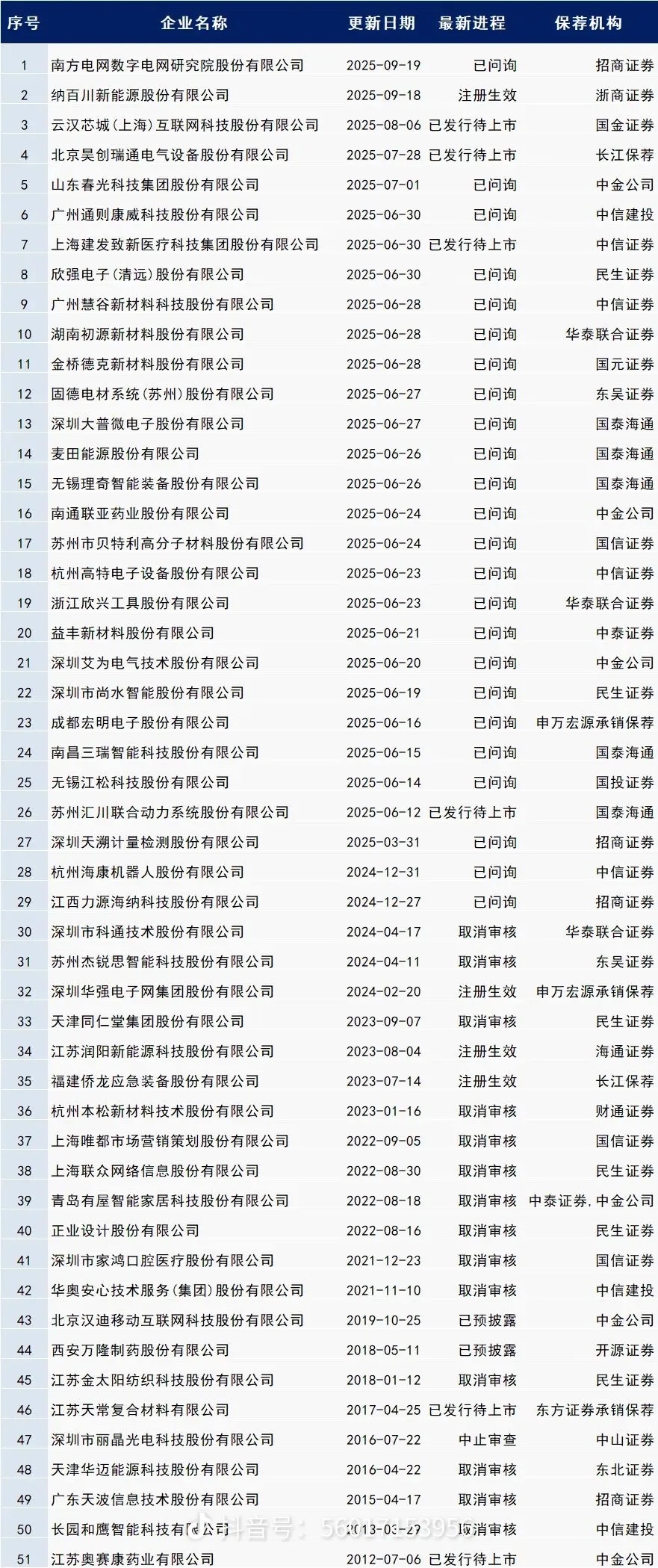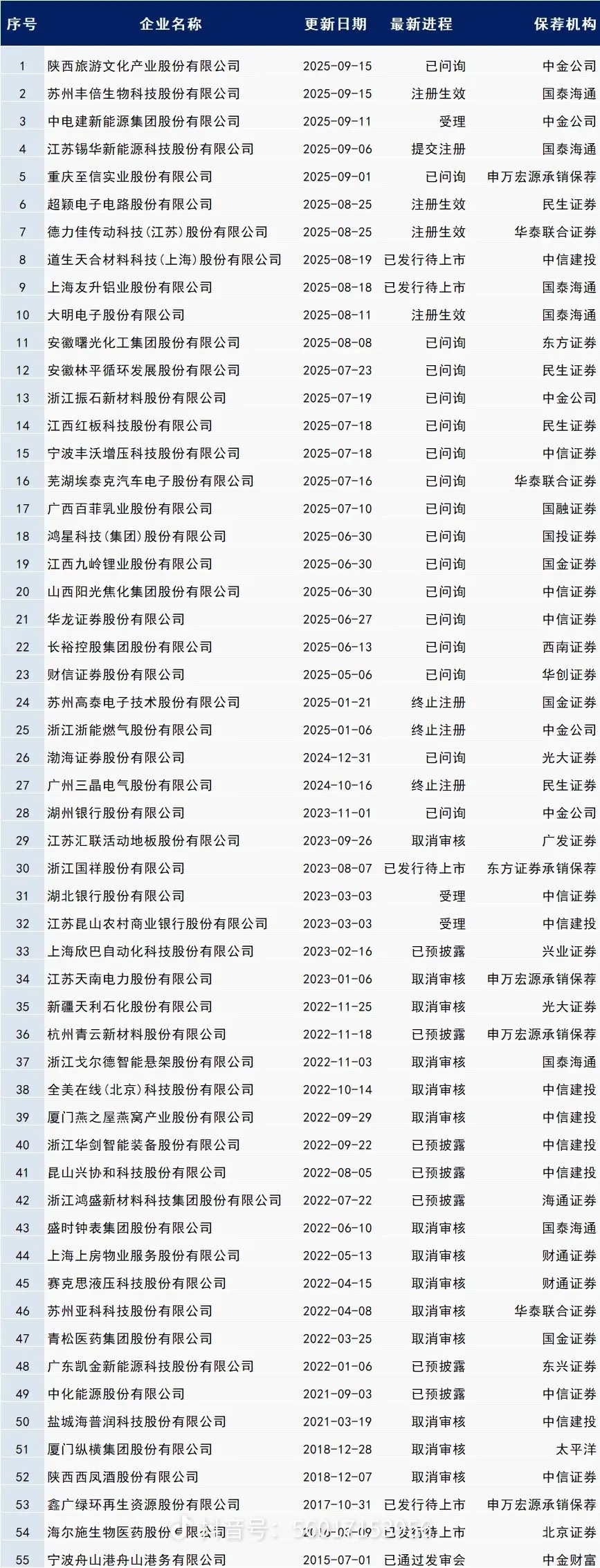 电建能源2023年开始ipo,后来终止了一直到2025又重启,这是所有ipo名单