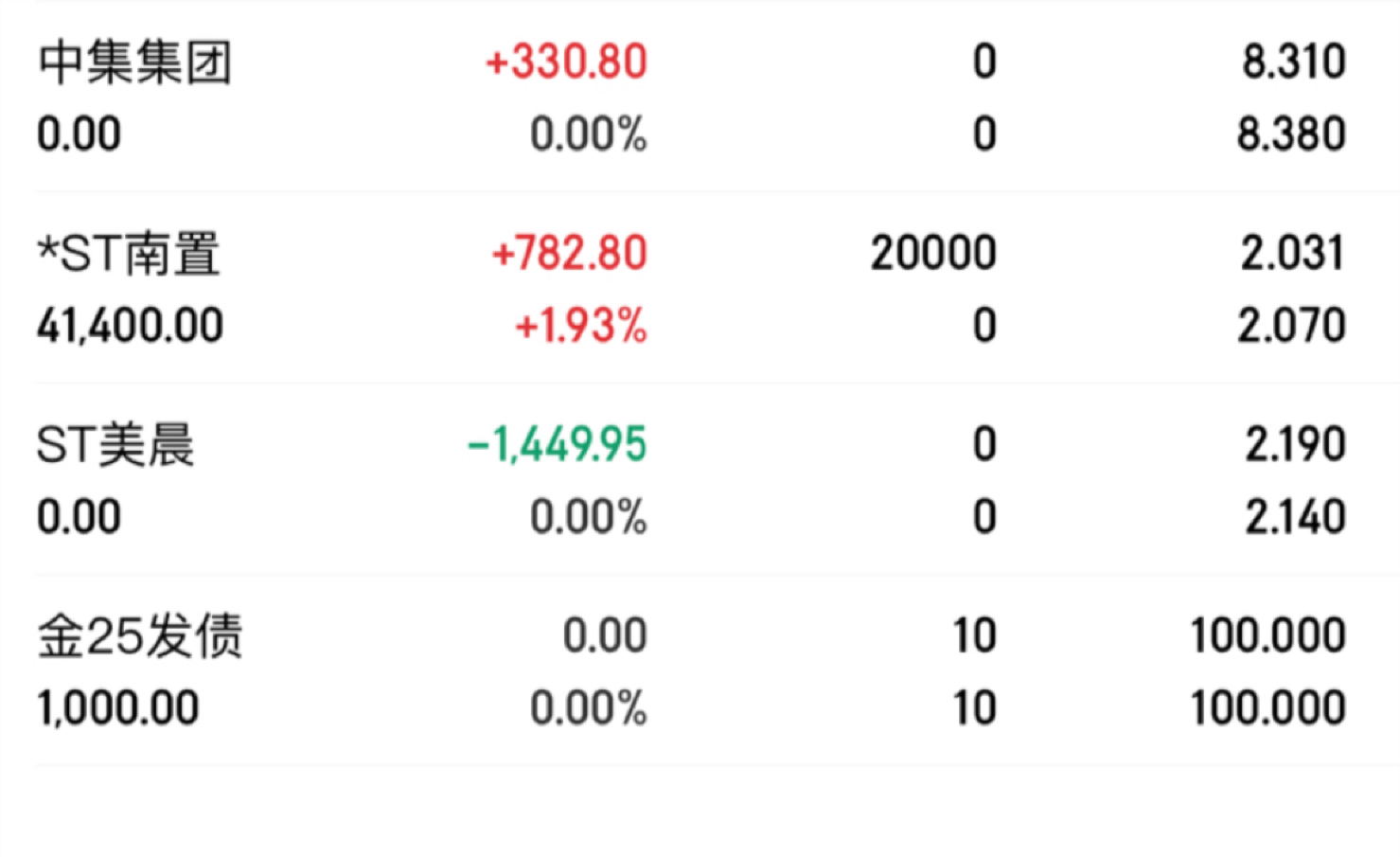 $*ST南置(SZ002305)$ 这是我第4次回来,8号买,16号买,23号买,这次又买,1.2次盈利10多点,第3次盈利2.7%,第4次暂时盈利。总想要个大反弹后就不再买了,删自选,存在退市风险