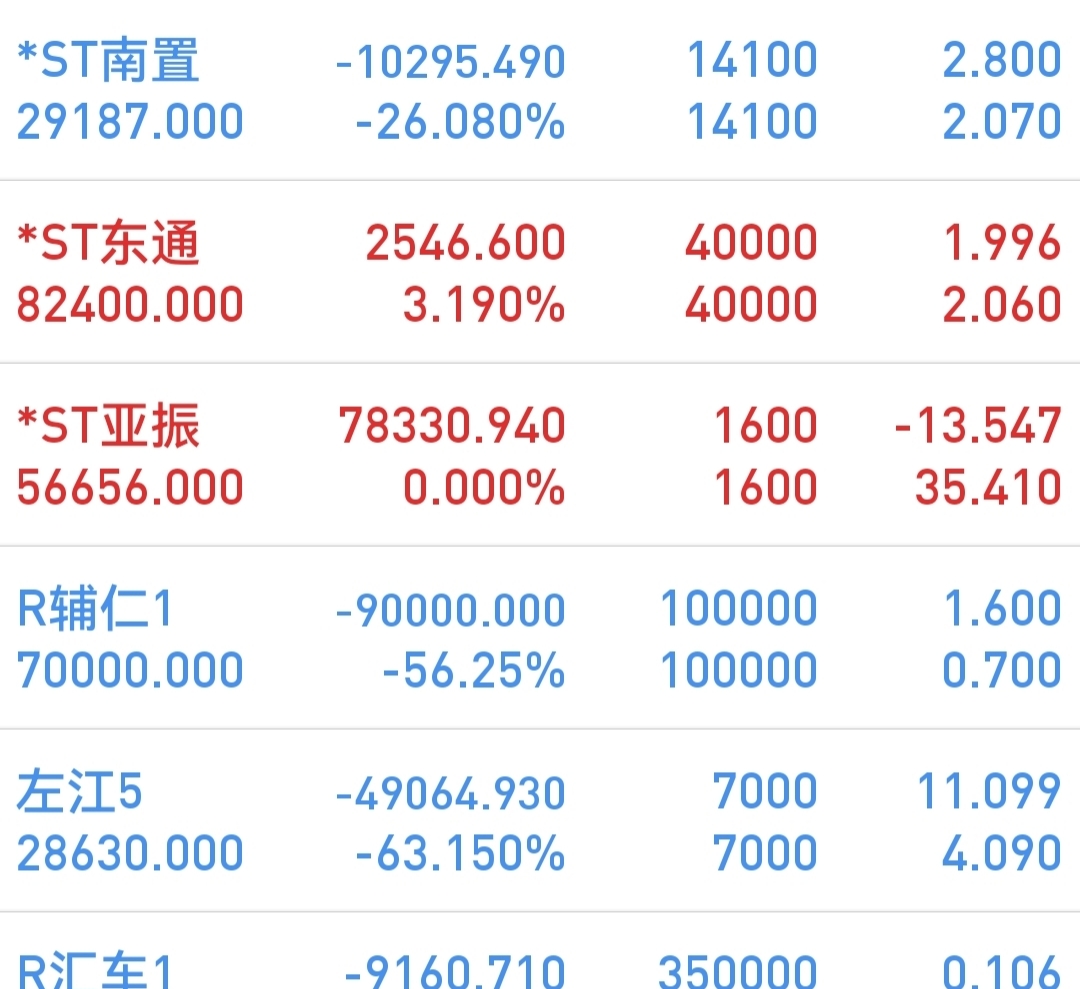 周一,何惧之有,你看看我的持仓。南置跌透了且有资金进来避险;东通所谓末日轮所谓退市垃圾,大盘越糟糕越受益;亚振高位减仓且高额盈利,另有稀土矿本质,理应抗跌。另外还有两个三板票,属于牛市最后的角落,都没得涨才能涨它们。平时俺买的就是这类股,说句不厚道的话,最怕指数大涨被抽血,而大盘指数一跌,就自带防御功能。