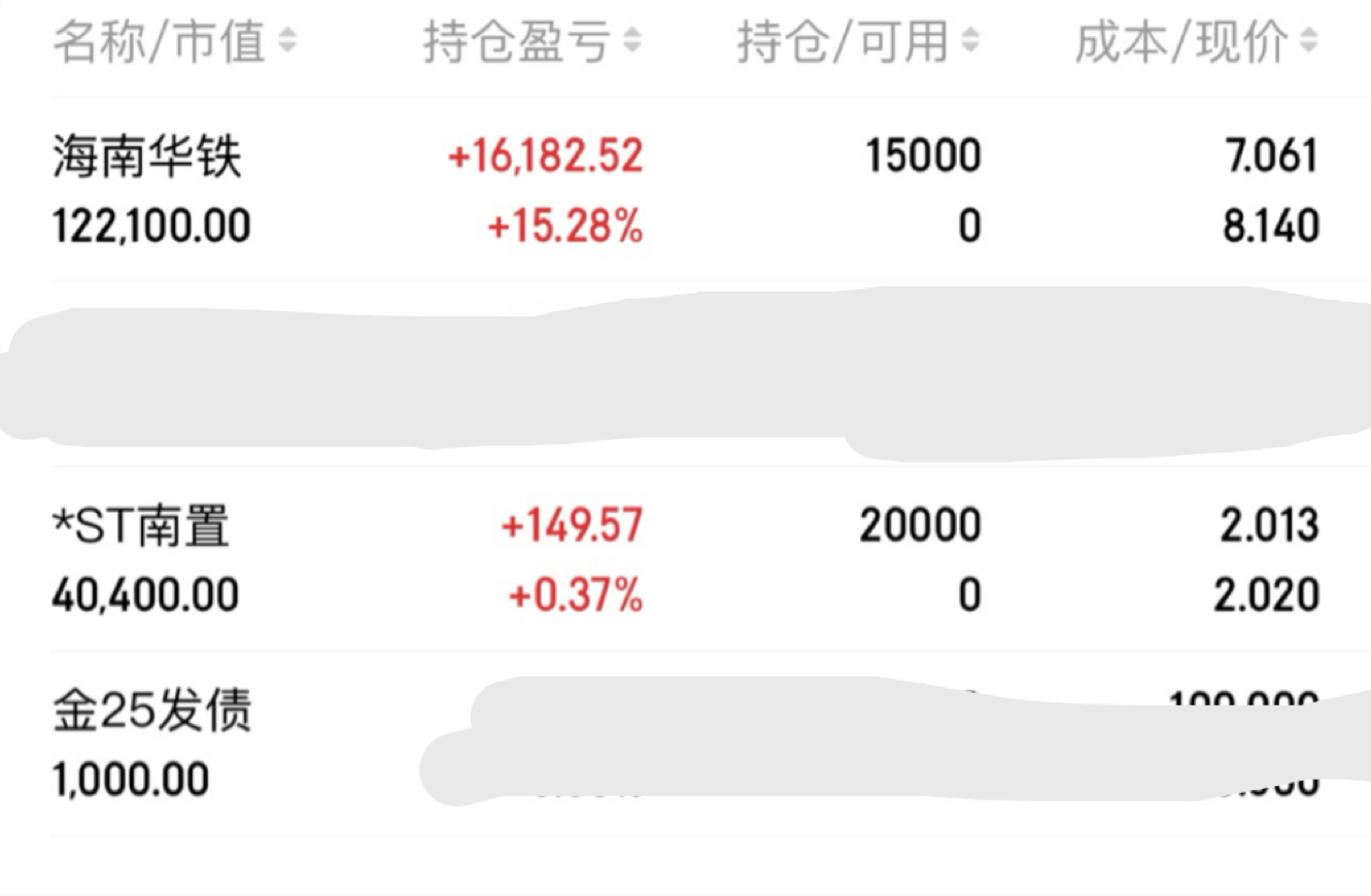$*ST南置(SZ002305)$ 做T3分钱。8号抄盈利10多点,16号抄盈利10多点,23号抄盈利2.7%,这次第4次,真坑。海南华铁今天地板抄了。