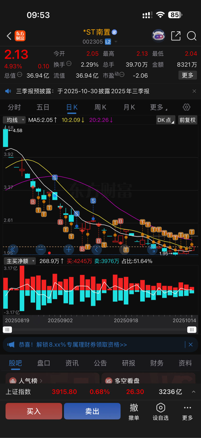 $*ST南置(SZ002305)$ 做了一个多月t开始盈利的哈哈哈哈哈
