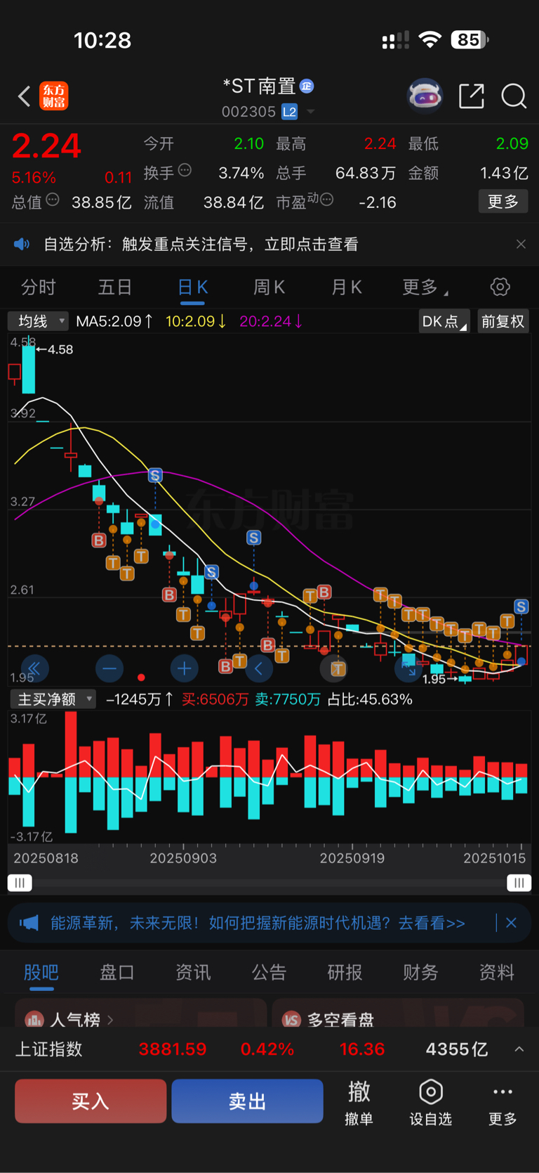 $*ST南置(SZ002305)$ 拿了一个多月赚8个点走人了,再也不来了
