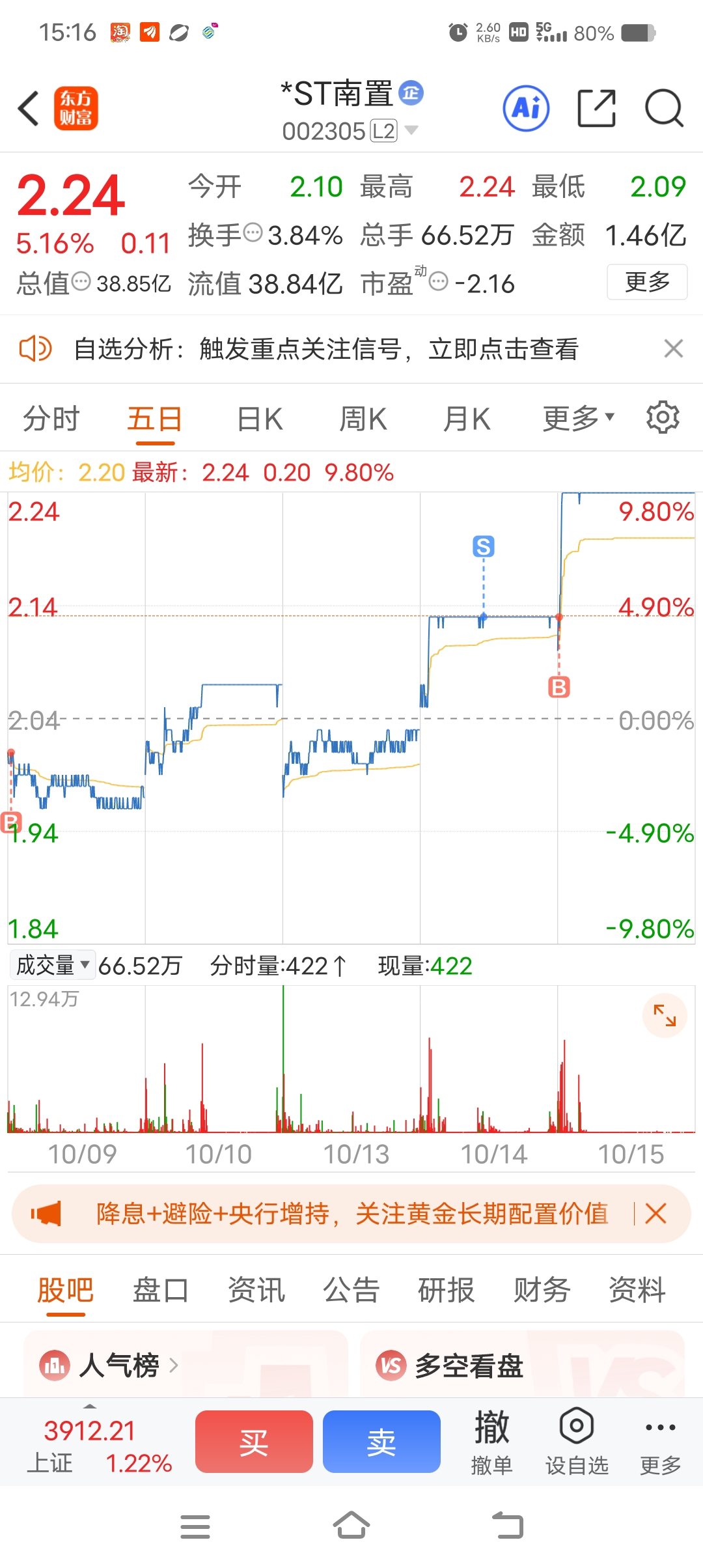 昨天涨停卖,今天又接回来了哈哈