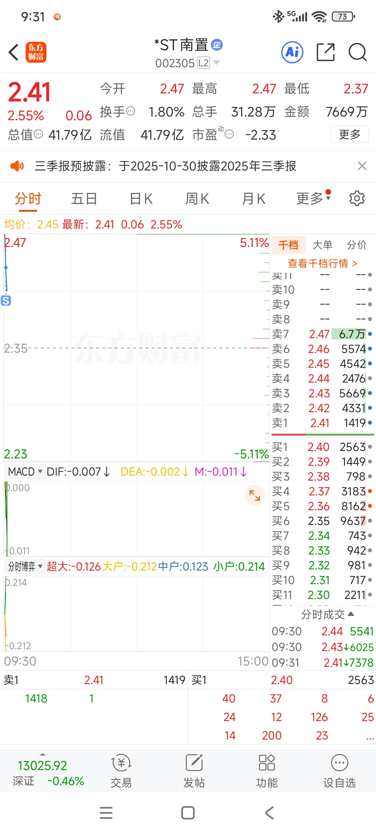 $*ST南置(SZ002305)$ 留下的兄弟发财