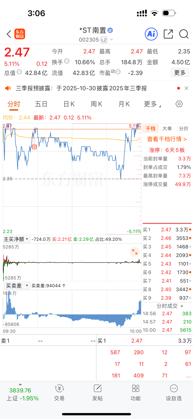 $*ST南置(SZ002305)$ 今天买中午饭都吃不下去