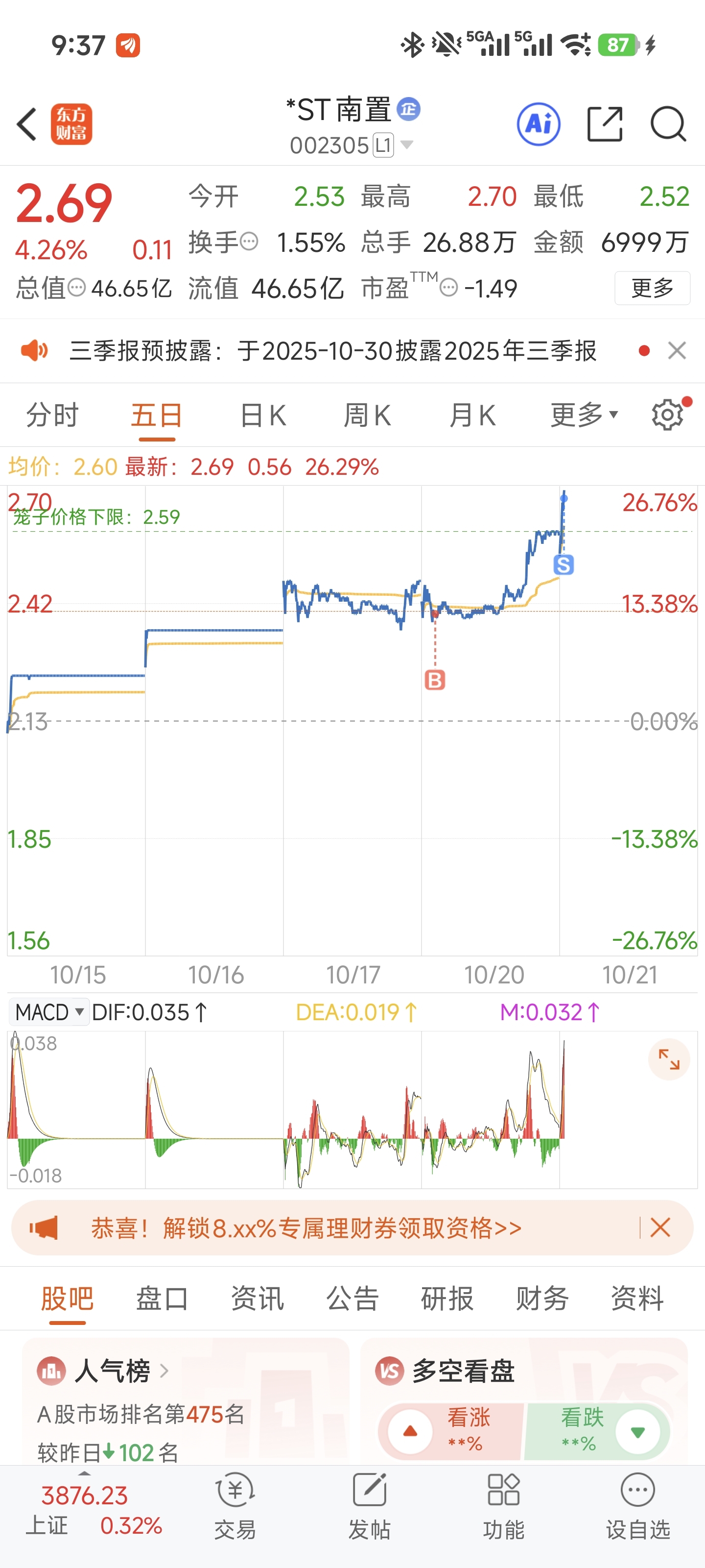 温馨提示: 1.根据《证券法》规定,禁止编造、传播虚假信息或者误导性信息,扰乱证券市场;2.用户在本社区发表的所有资料、言论等仅代表个人观点,与本网站立场无关,不对您构成任何投资建议。用户应基于自己的独立判断,自行决定证券投资并承担相应风险。《东方财富社区管理规定》