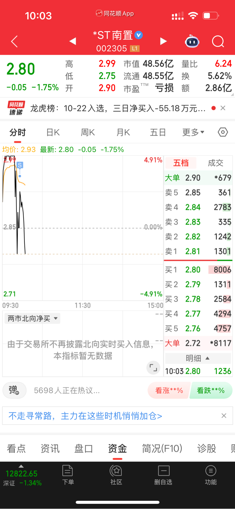 $*ST南置(SZ002305)$ 小仓位吃三四十个点满足了 能涨下去也好大家都发财