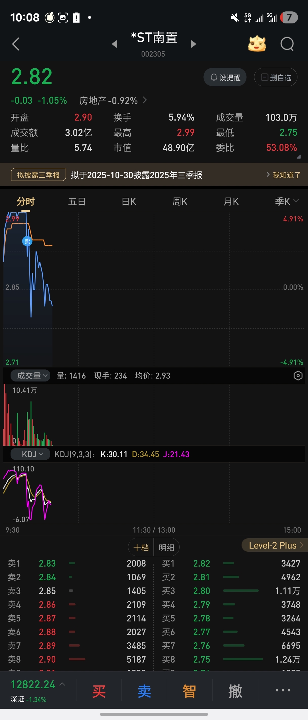 $*ST南置(SZ002305)$ 半仓3500手,本周获利30w,2.93清仓了,祝好xdm