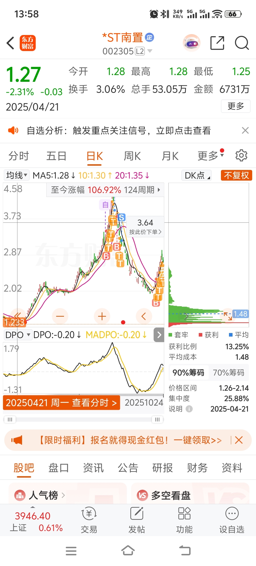 $*ST南置(SZ002305)$ 请砸到一块,谢谢您!
