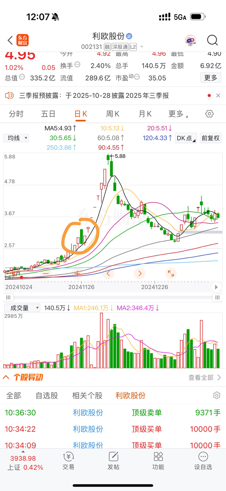 利欧股份去年这个时候,画圈的地方第5个板,从技术上看第5板上是该走了,当天,天地