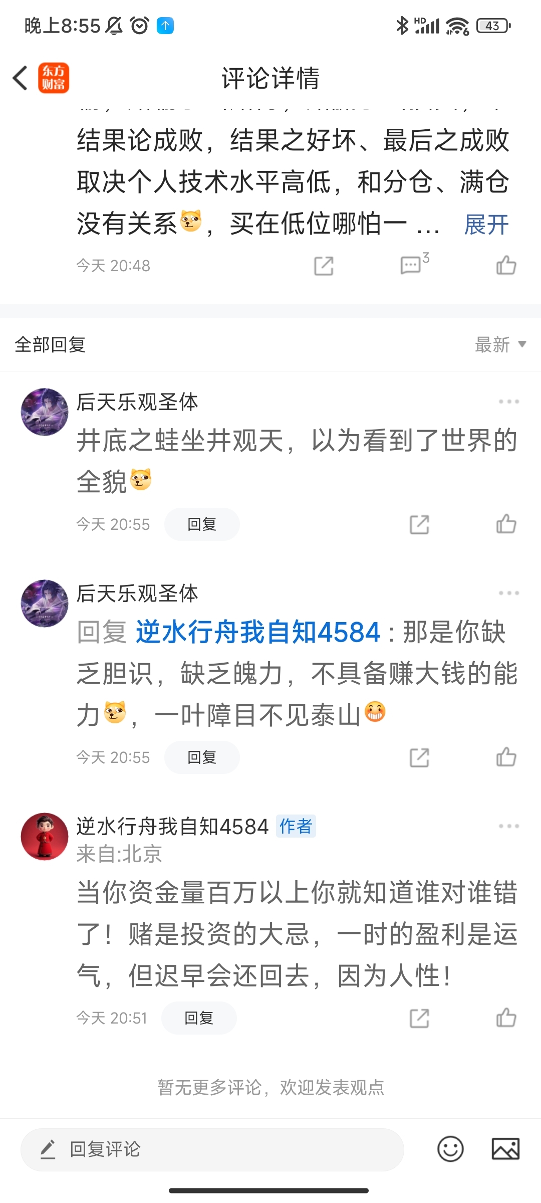 温馨提示: 1.根据《证券法》规定,禁止编造、传播虚假信息或者误导性信息,扰乱证券市场;2.用户在本社区发表的所有资料、言论等仅代表个人观点,与本网站立场无关,不对您构成任何投资建议。用户应基于自己的独立判断,自行决定证券投资并承担相应风险。《东方财富社区管理规定》