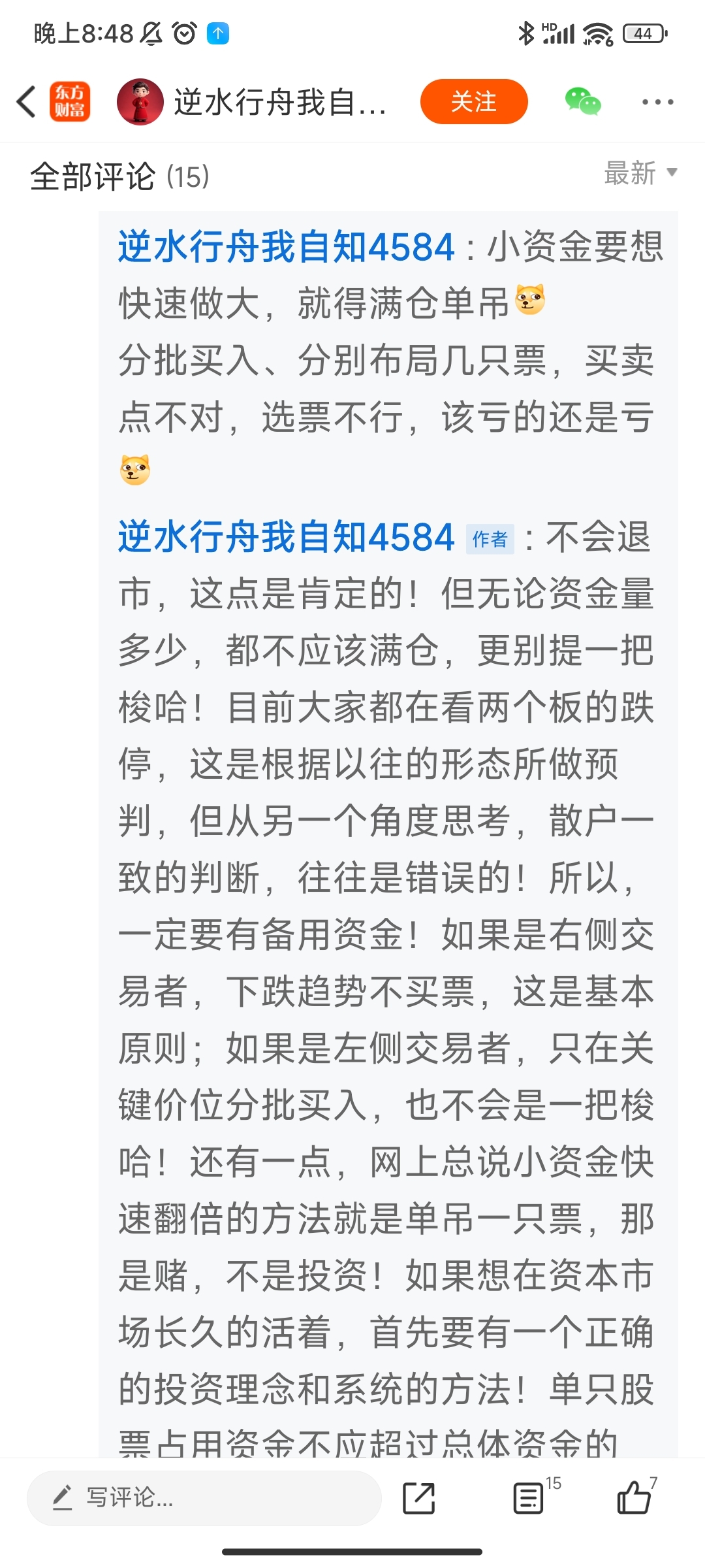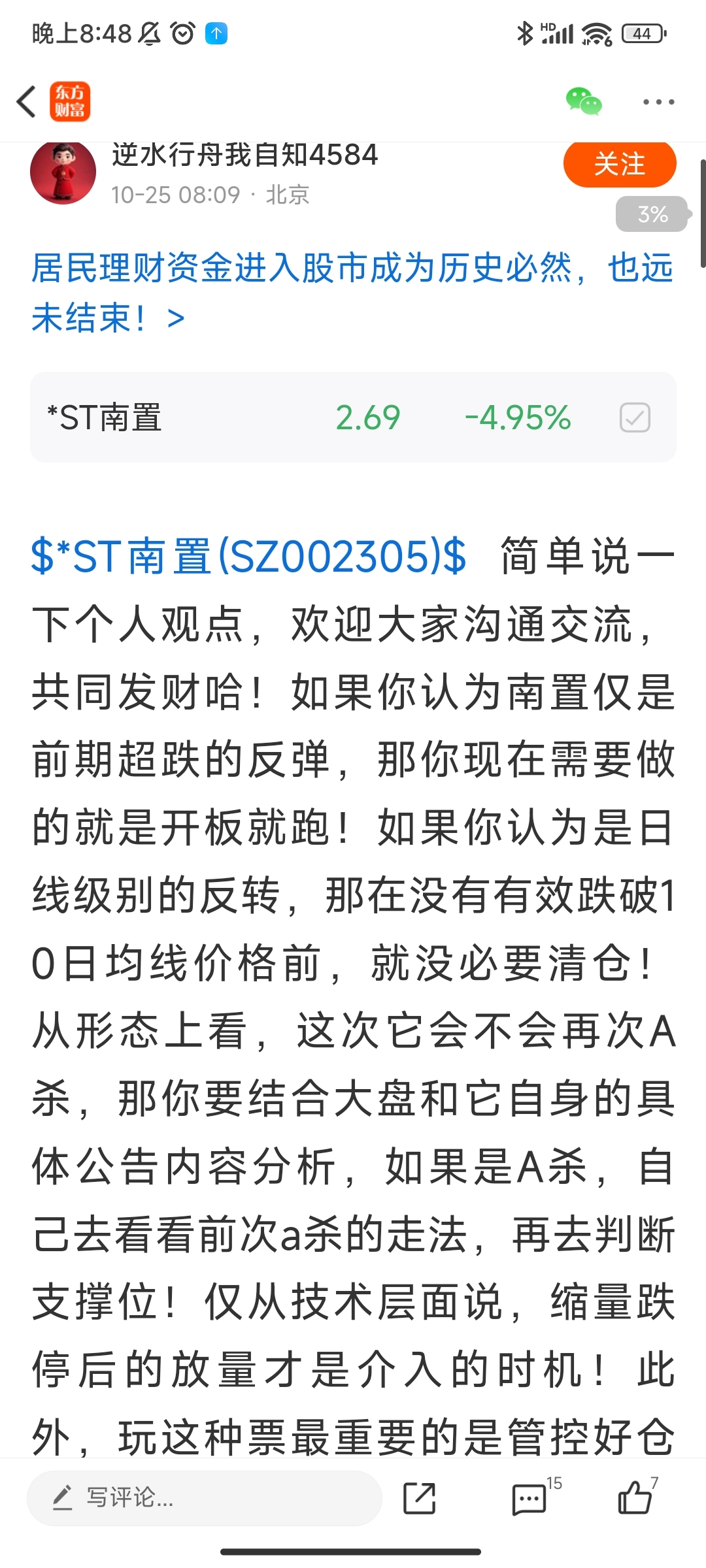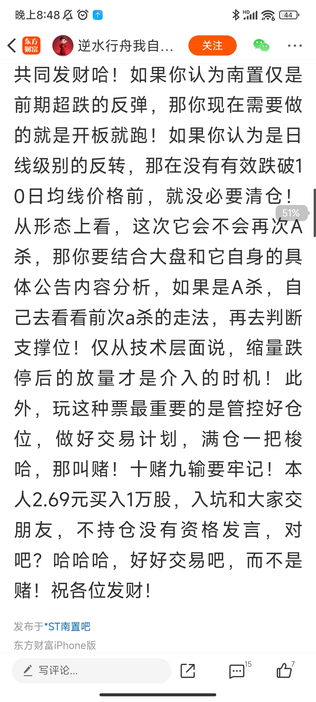 ,我也是满仓单吊南置本周四2.99全部清仓,你们看我的操作存在他说的那些亏损本金的风险吗