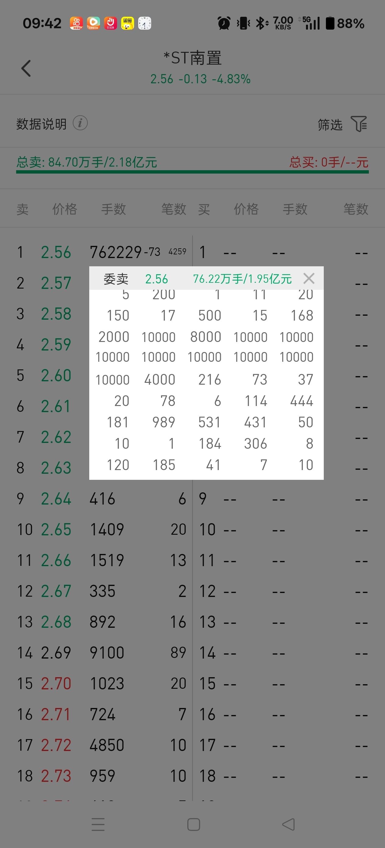 $*ST南置(SZ002305)$ 恶庄压了不少于20W手~