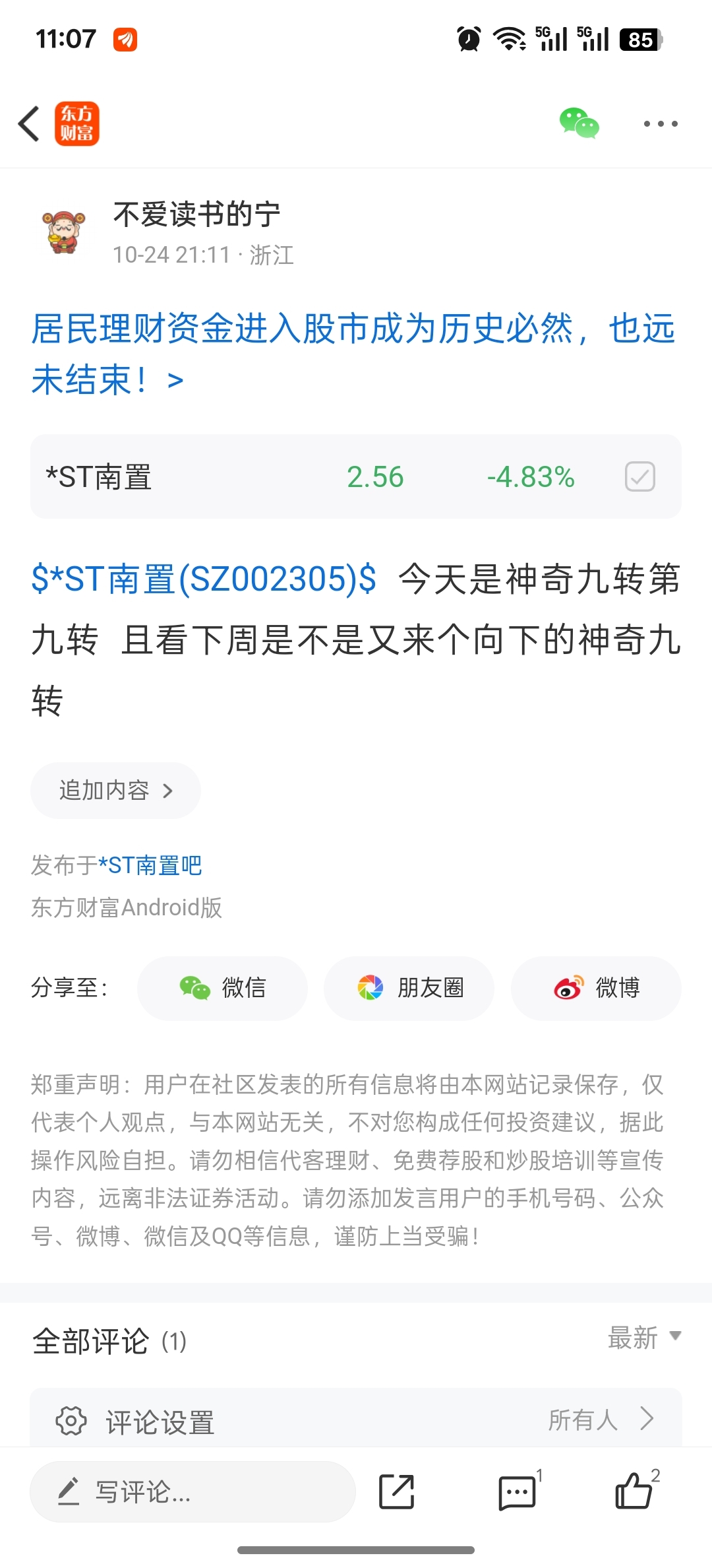温馨提示: 1.根据《证券法》规定,禁止编造、传播虚假信息或者误导性信息,扰乱证券市场;2.用户在本社区发表的所有资料、言论等仅代表个人观点,与本网站立场无关,不对您构成任何投资建议。用户应基于自己的独立判断,自行决定证券投资并承担相应风险。《东方财富社区管理规定》
