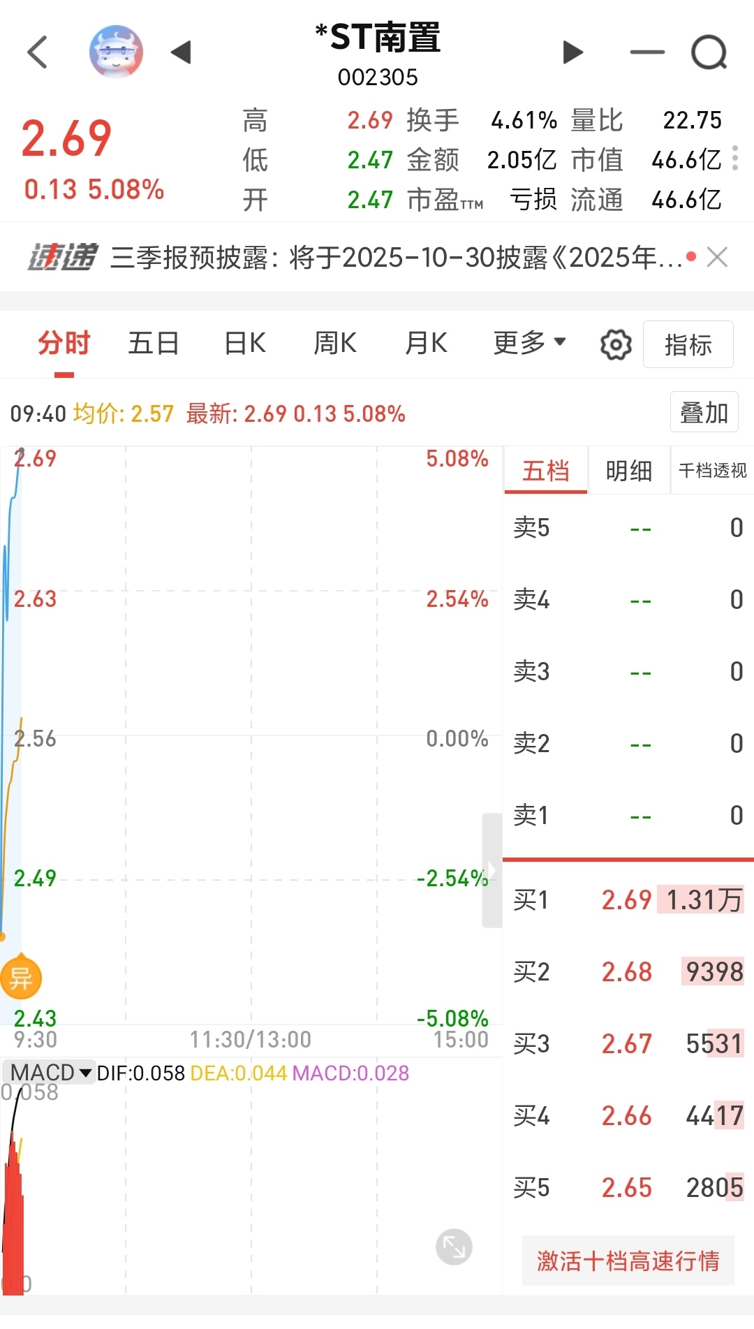 $*ST南置(SZ002305)$ 完了!要地天板了吗?竟然成功的把俺洗出来了!