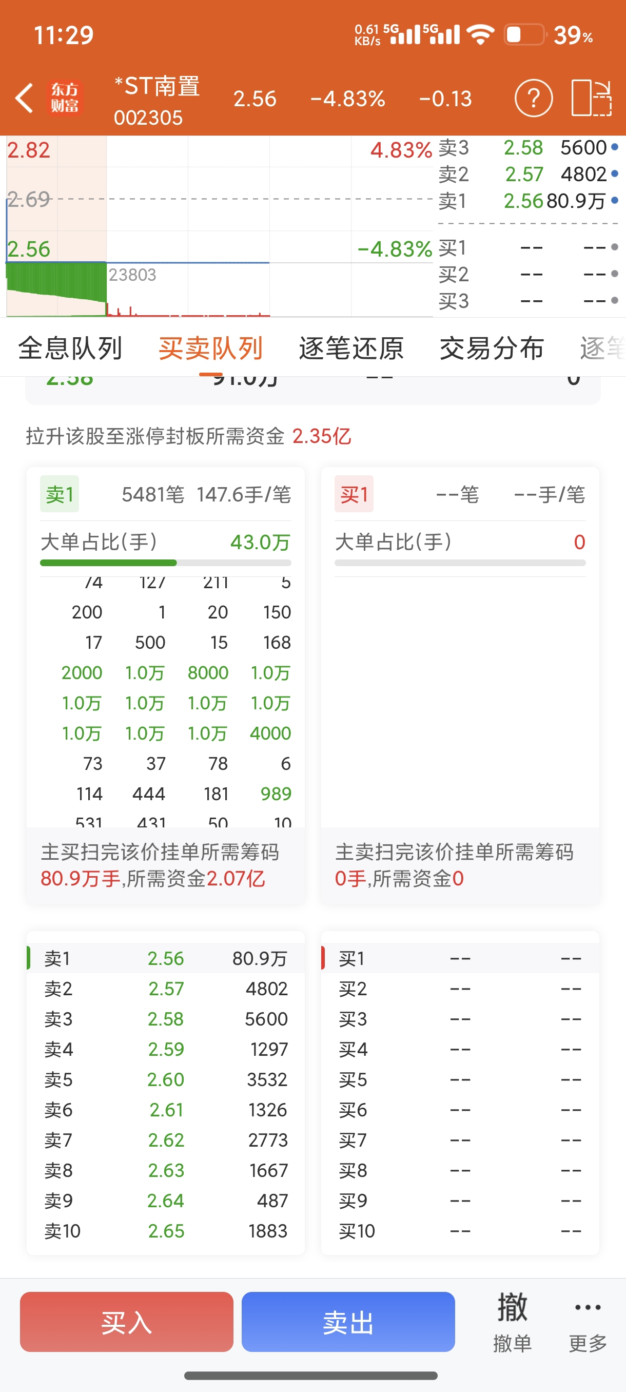 $*ST南置(SZ002305)$ 就这几个大单,剩下的都是没有上4000手的。