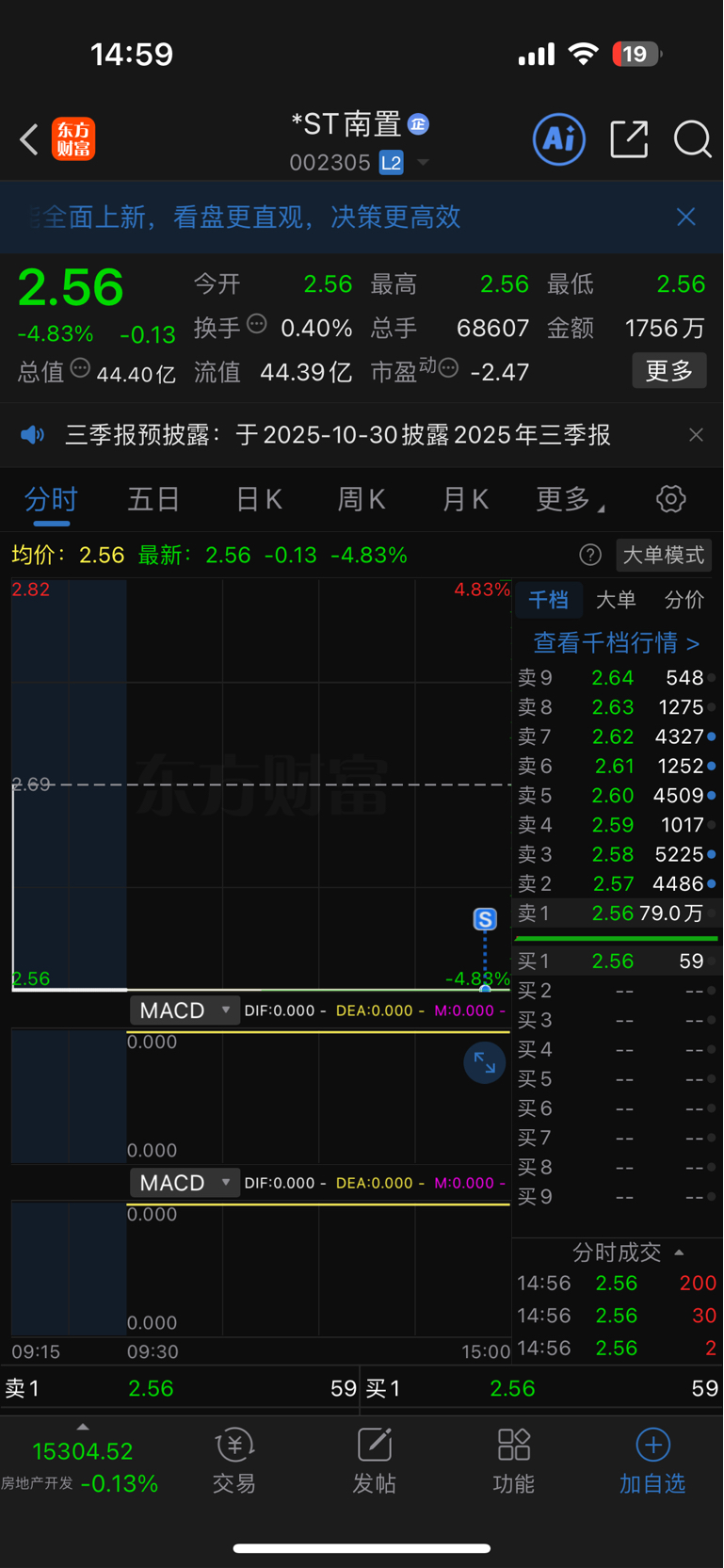 $*ST南置(SZ002305)$ 亏十五个点出了