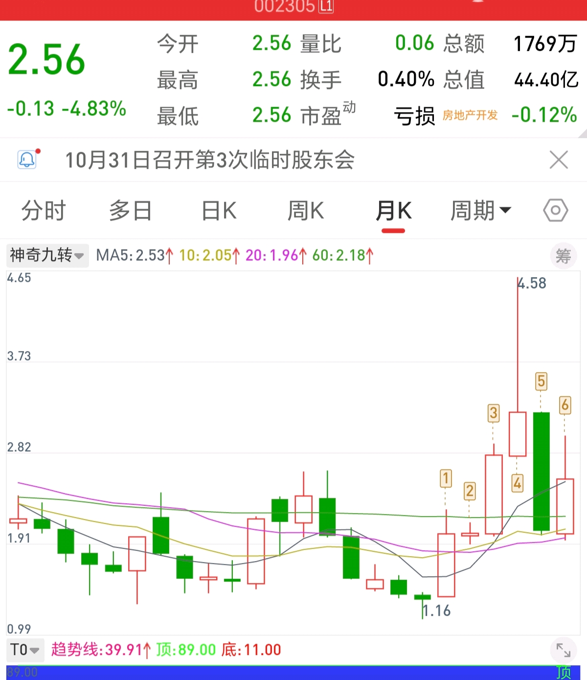 $*ST南置(SZ002305)$ 跌下来就是建仓的好时机,股价已经反转。10月还有4个交易日,目前月线在走序列高6,就算跌倒月底指标也有效。序列高6中阳线,后面7.8.9肯定还有一根中阳线。也就是最少还有一个月的上涨周期。