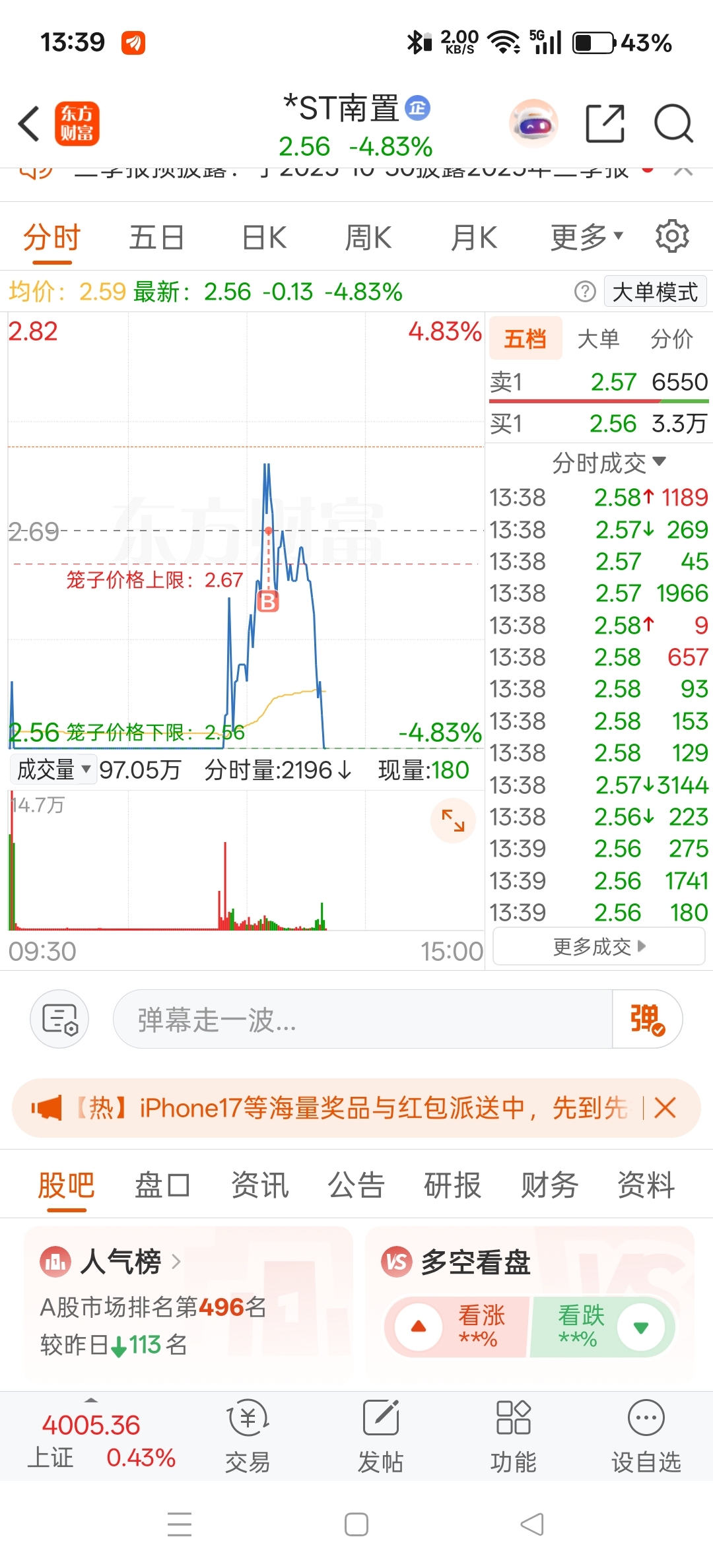 $*ST南置(SZ002305)$ 哟嚯,套我?