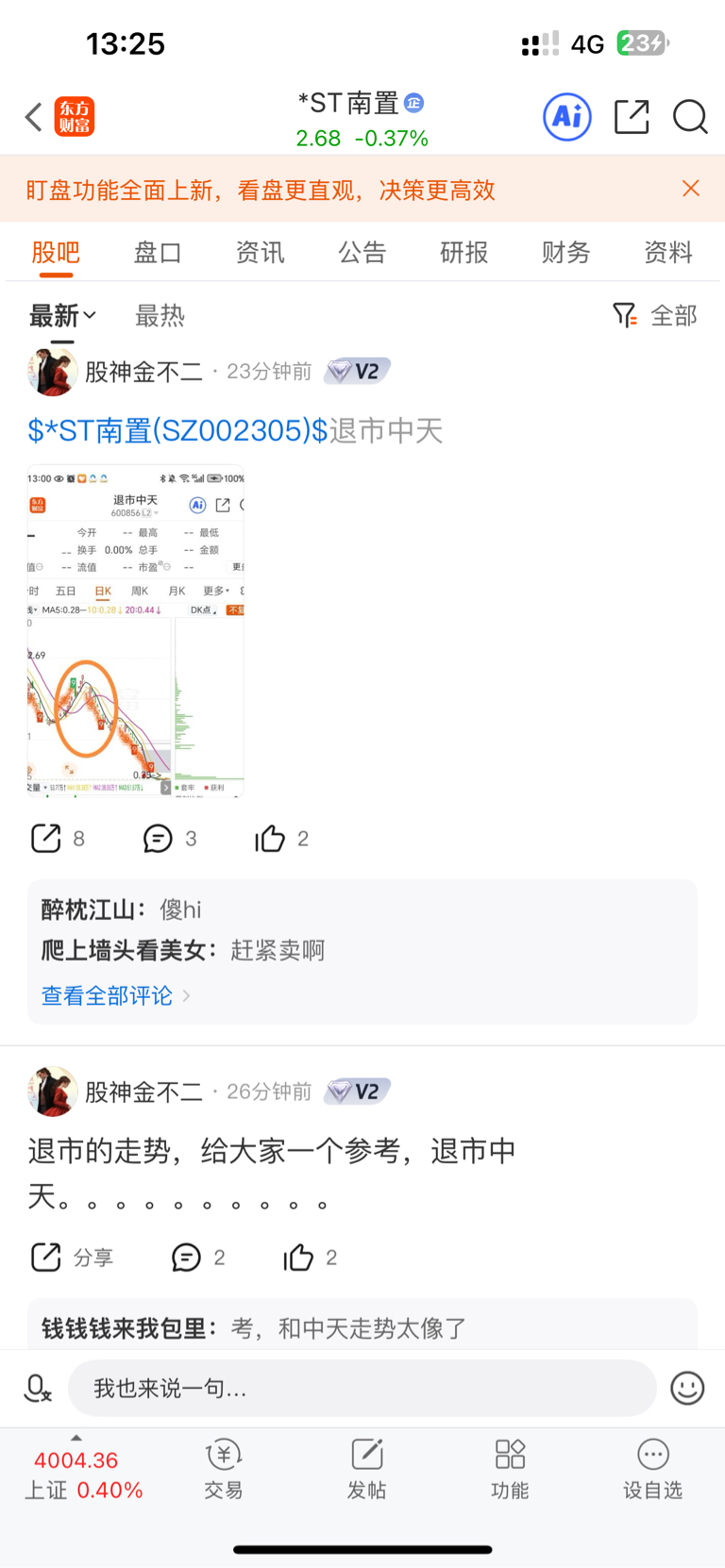 很多人都觉的南置是退市股,和之前已经退市了的中天退市时的走势很像,各位高手们觉得