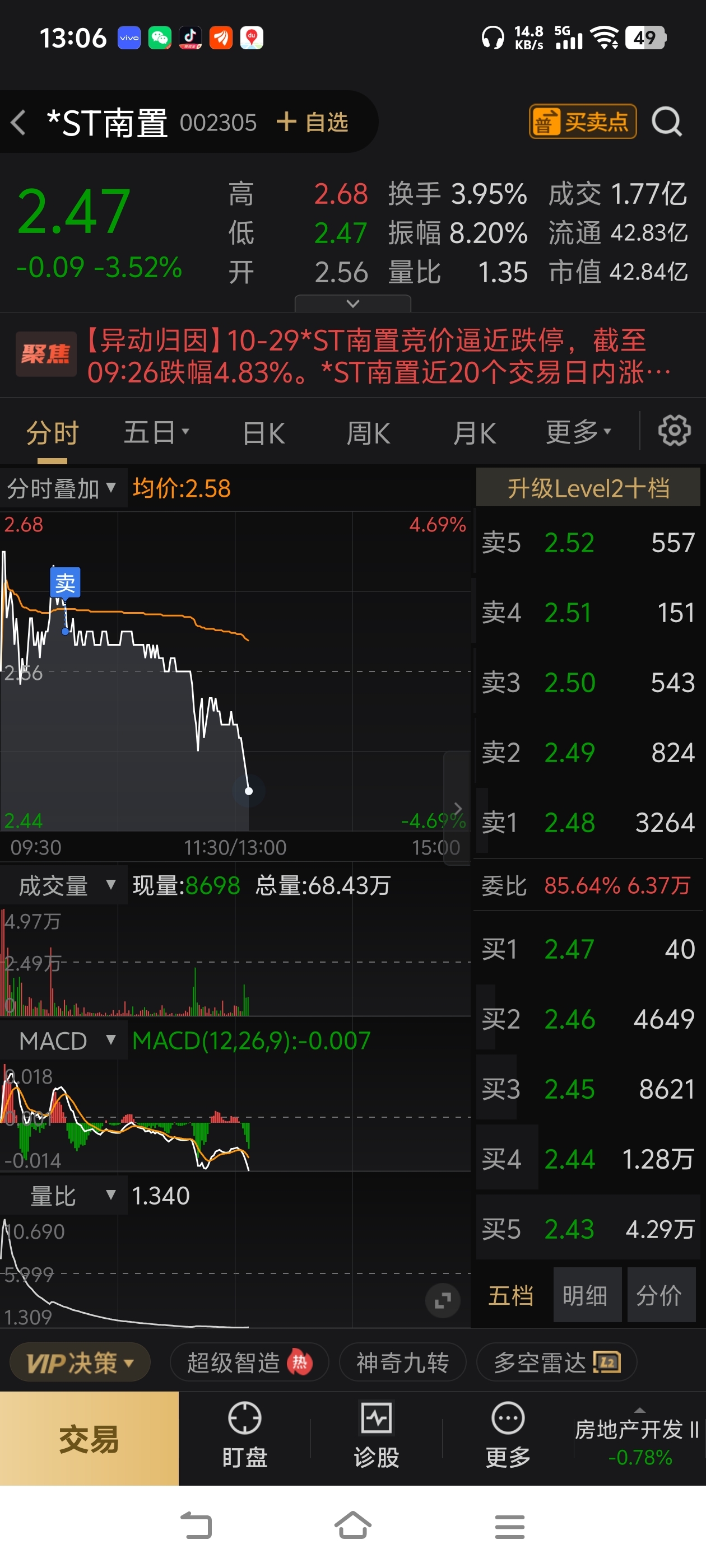 $*ST南置(SZ002305)$ 还好卖了,太吓人了