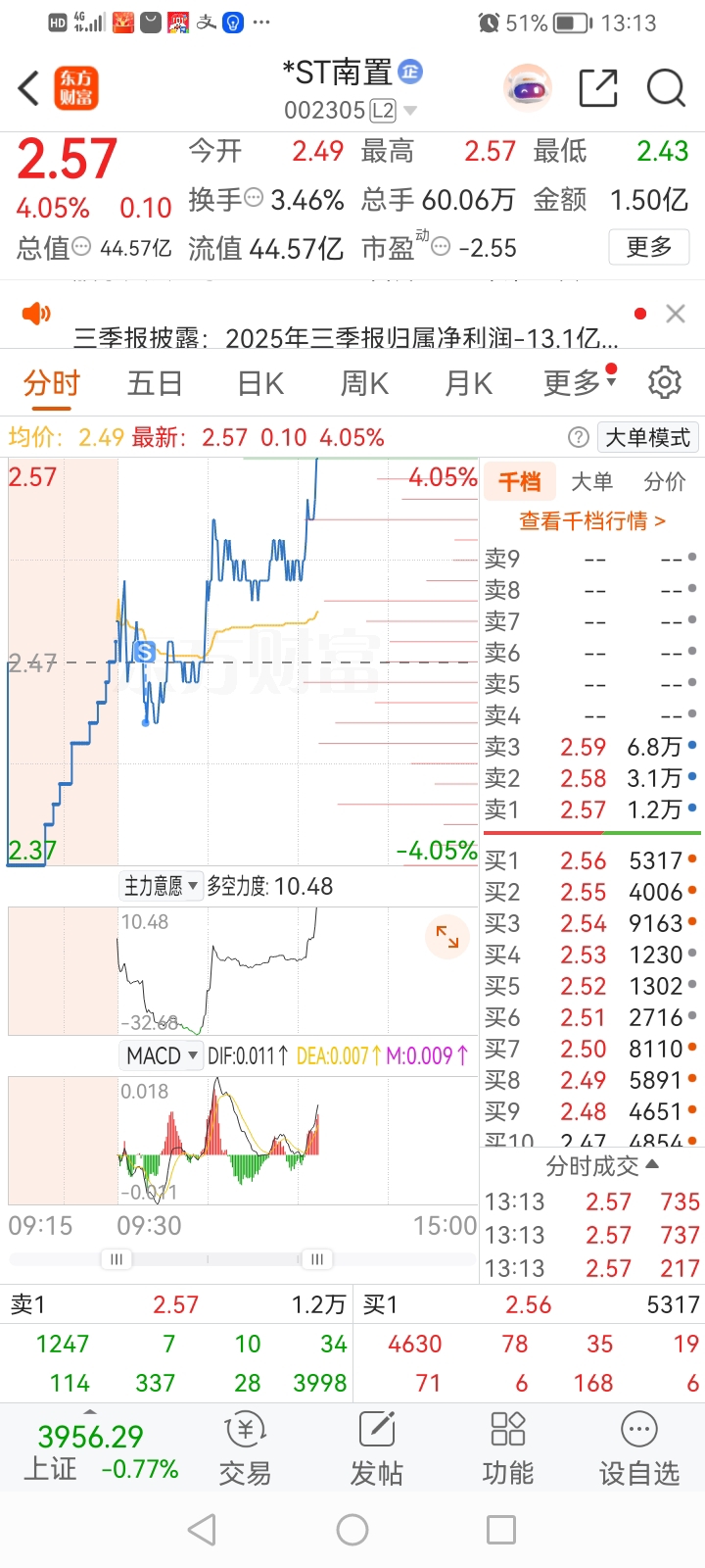 $*ST南置(SZ002305)$  卖飞了,2.44卖在最低点,气死我了!