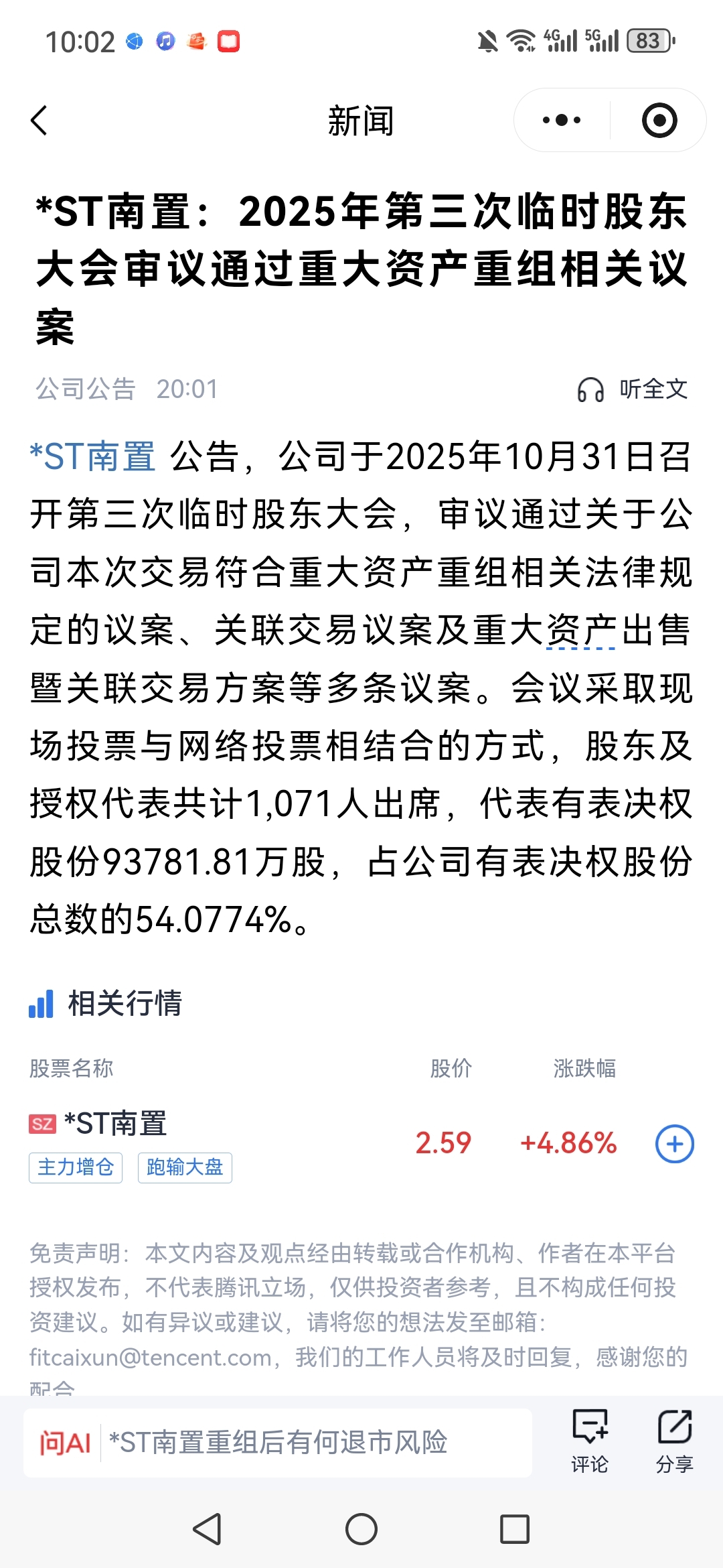$*ST南置(SZ002305)$
