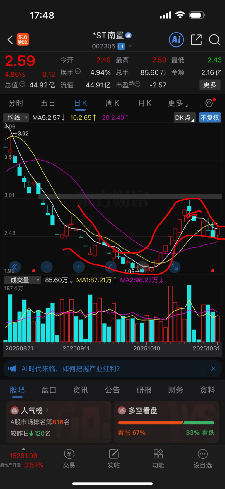 $*ST南置(SZ002305)$ 标准老鸭头形状,开启升势