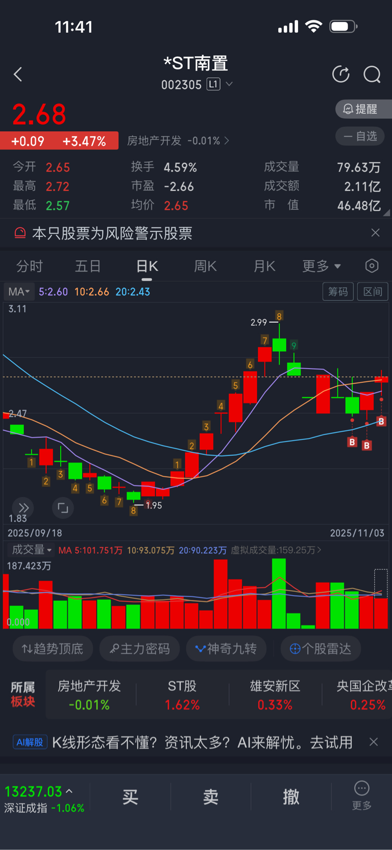 $*ST南置(SZ002305)$ 连续买三天,一股没卖,也没有做t