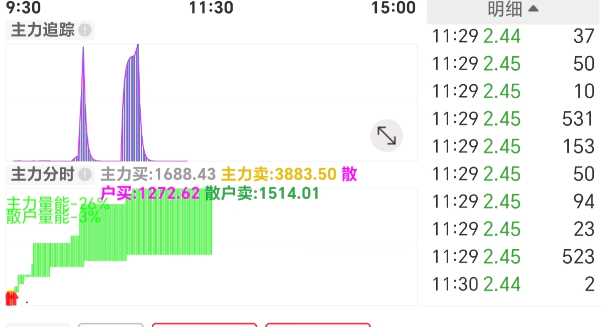 2.47被跌破,今天主力散户全部在抛。好在今天放量了,收盘站不上2.47就减仓,