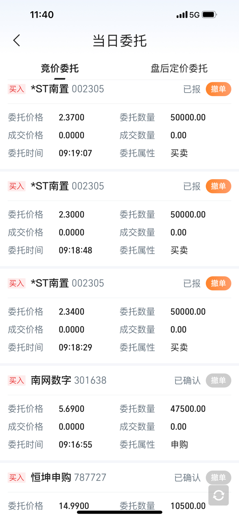 $*ST南置(SZ002305)$ 早盘委托了三笔单子,目前一个也没成交!这波调整形态还不完整,周一周二就明确了!稳健型的,周三看看机会,嘿嘿嘿