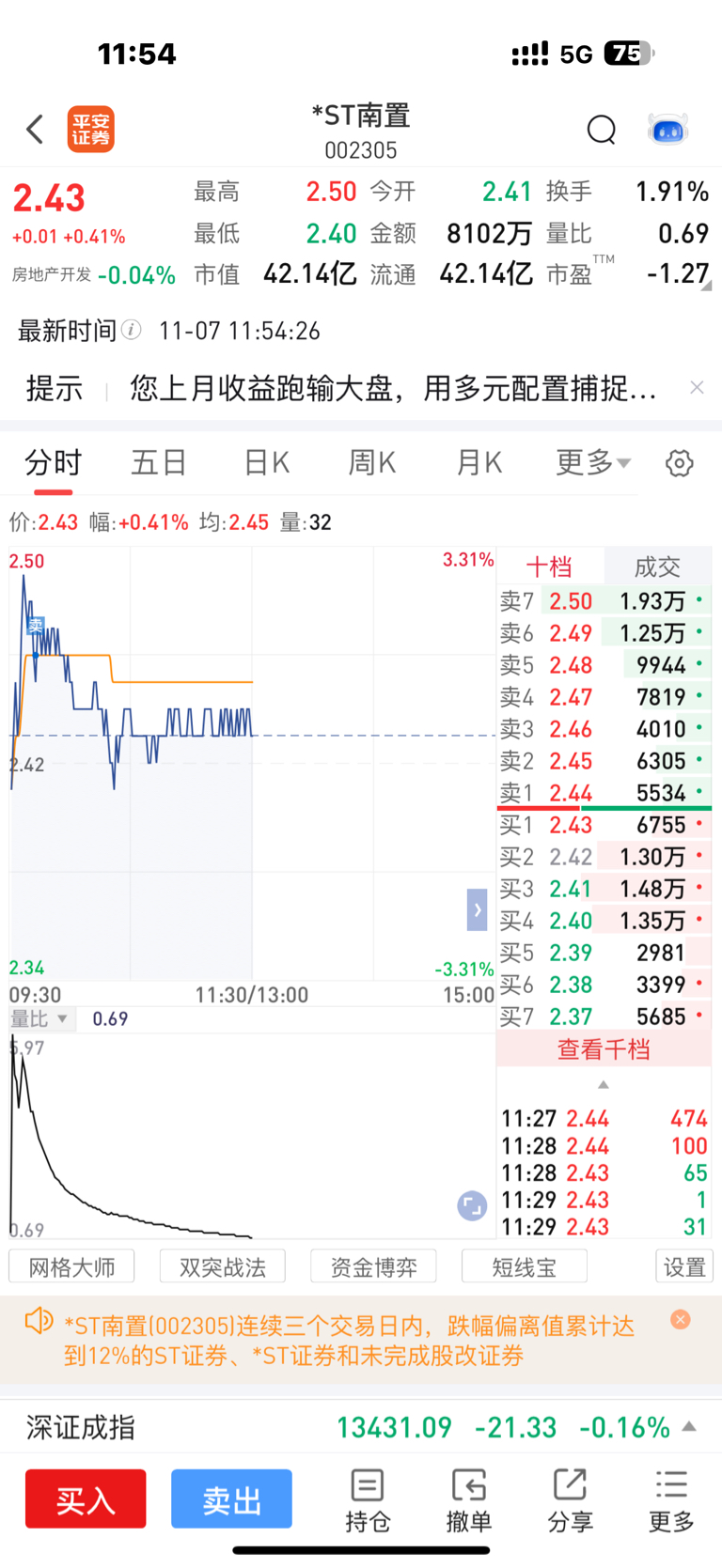 $*ST南置(SZ002305)$ 不好玩 老是不冲上去