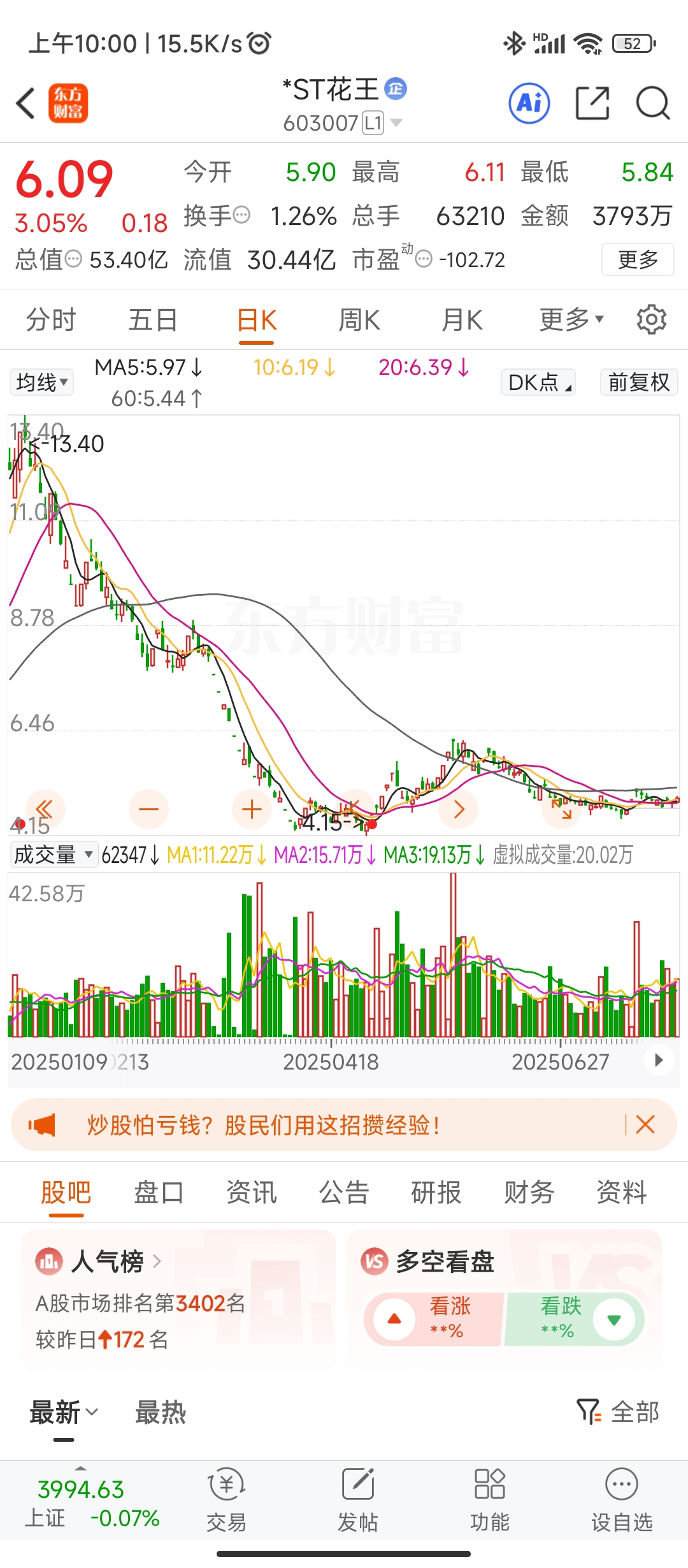 $*ST南置(SZ002305)$ 跟st花王一个模子里刻出了的,会再次挑战2块