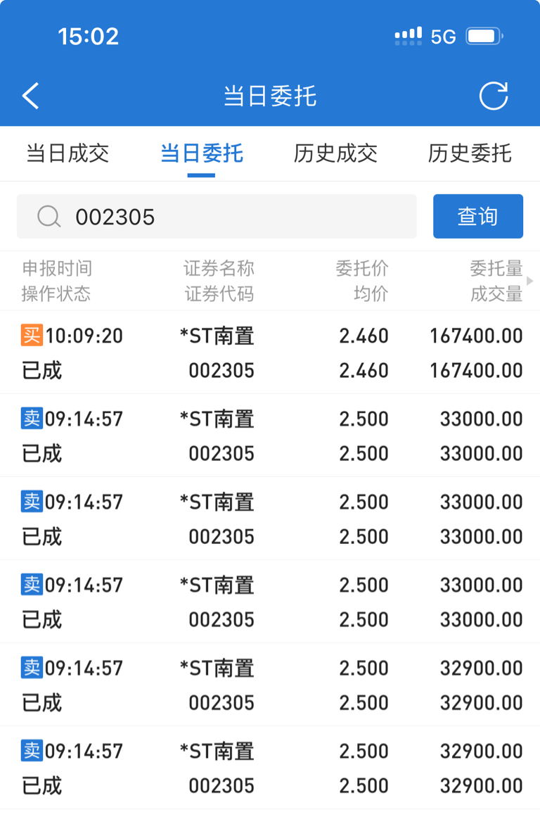 $*ST南置(SZ002305)$ 今天违背了早上的承诺,看见涨了就想卖,看见跌了就想买。还是管不住手。
