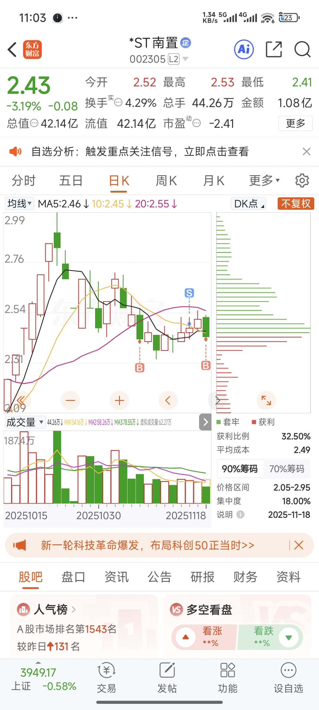 $*ST南置(SZ002305)$ 卖飞了还能接回来