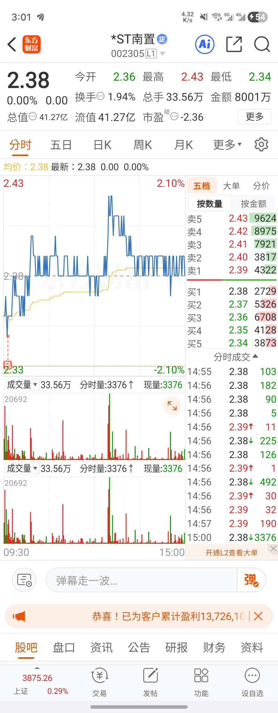 $*ST南置(SZ002305)$ 没有安自己的计划执行,梭哈太早