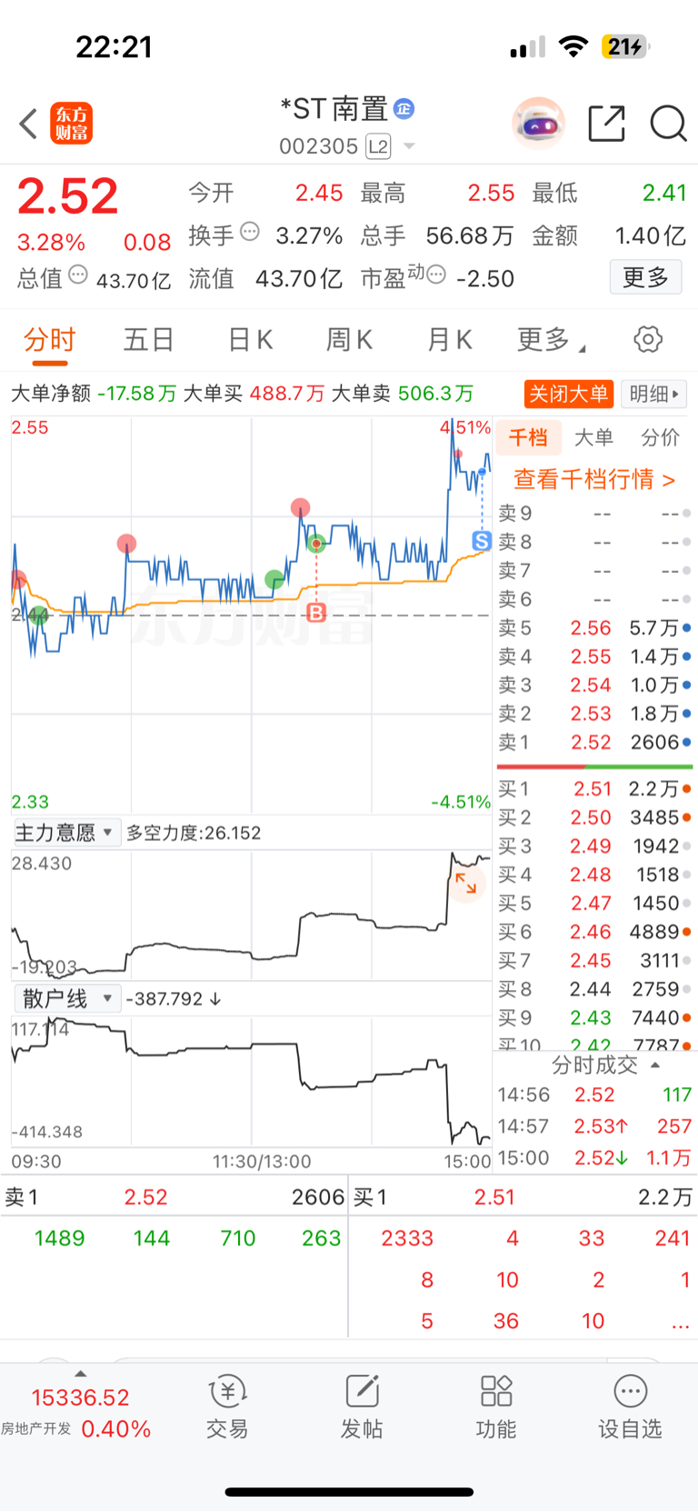$*ST南置(SZ002305)$ 买飞了吗 看你们说的买不到了