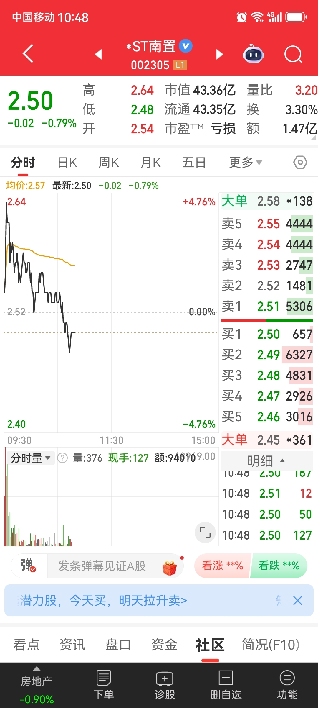 $*ST南置(SZ002305)$ 2.55,2.54全是4444手,庄是真牛