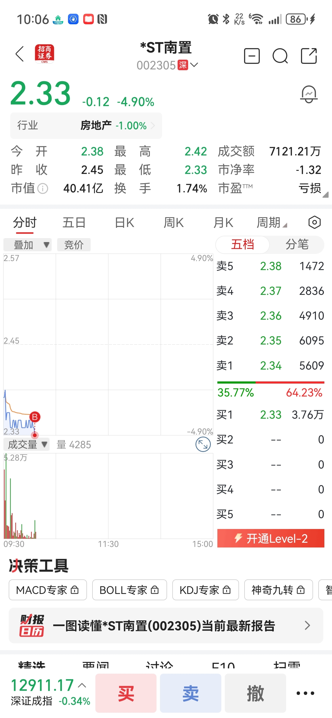$*ST南置(SZ002305)$ 12.4早盘接回南置,短线无理性、都情绪推动!