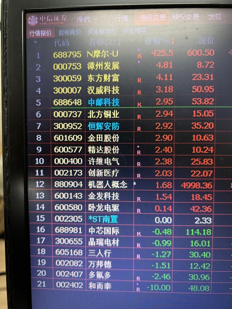 $*ST南置(SZ002305)$ 今天的缩量挺好,如果真像某位大咖说的惊人的跌停封单,那才叫惊人心慌!下周一或许开盘绿盘,但收盘时不一定绿哦!继续集合竞价时跌停价买入,一切随缘!今天是近期第一次持仓票没有绿色的,值得庆祝,哈哈哈!加油,各位好友多多发财!