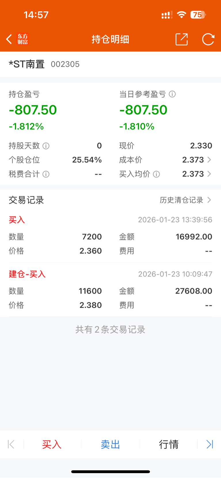 $*ST南置(SZ002305)$ 无语,我一买就跌