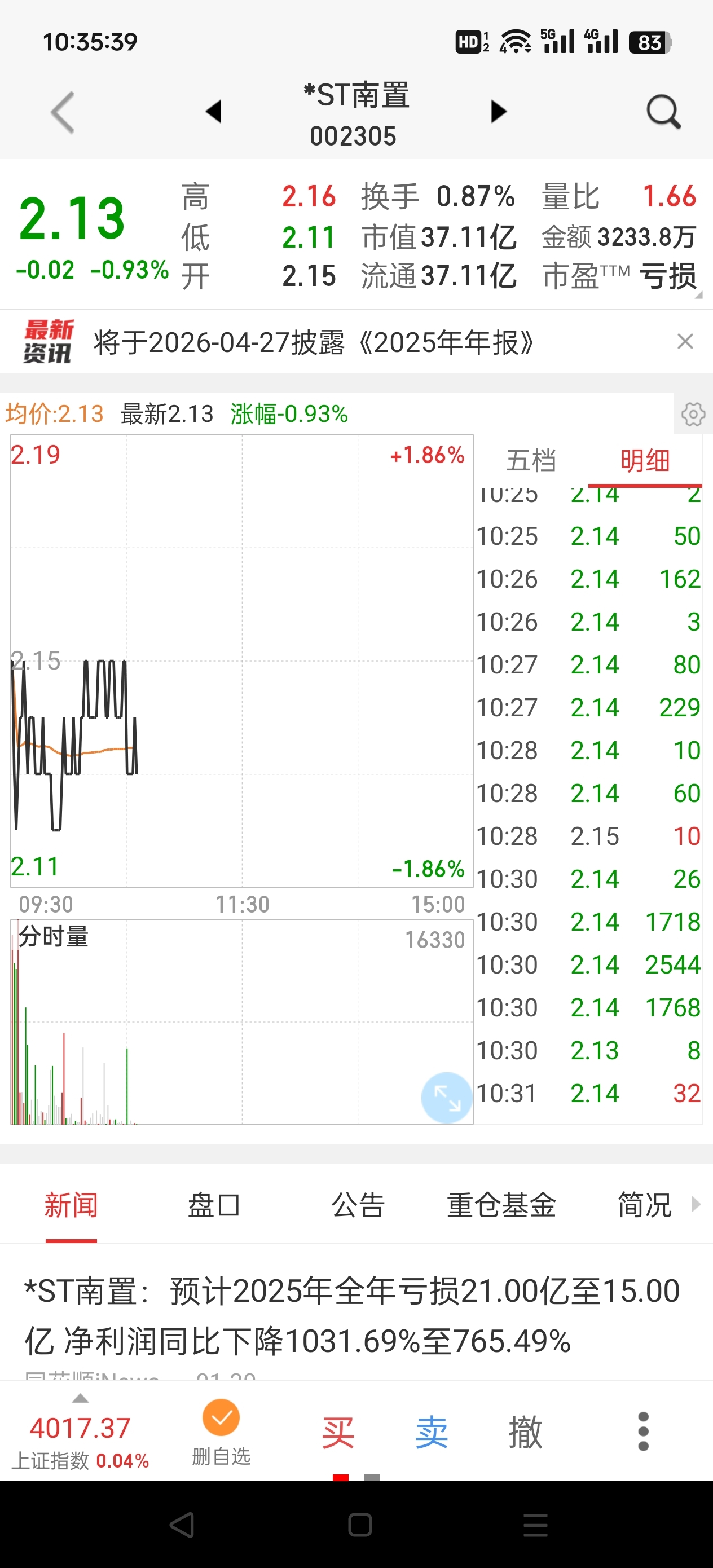 $*ST南置(SZ002305)$ 10.29一分钟都没有成交,都没量了也不知道整天倒来倒去有什么意思