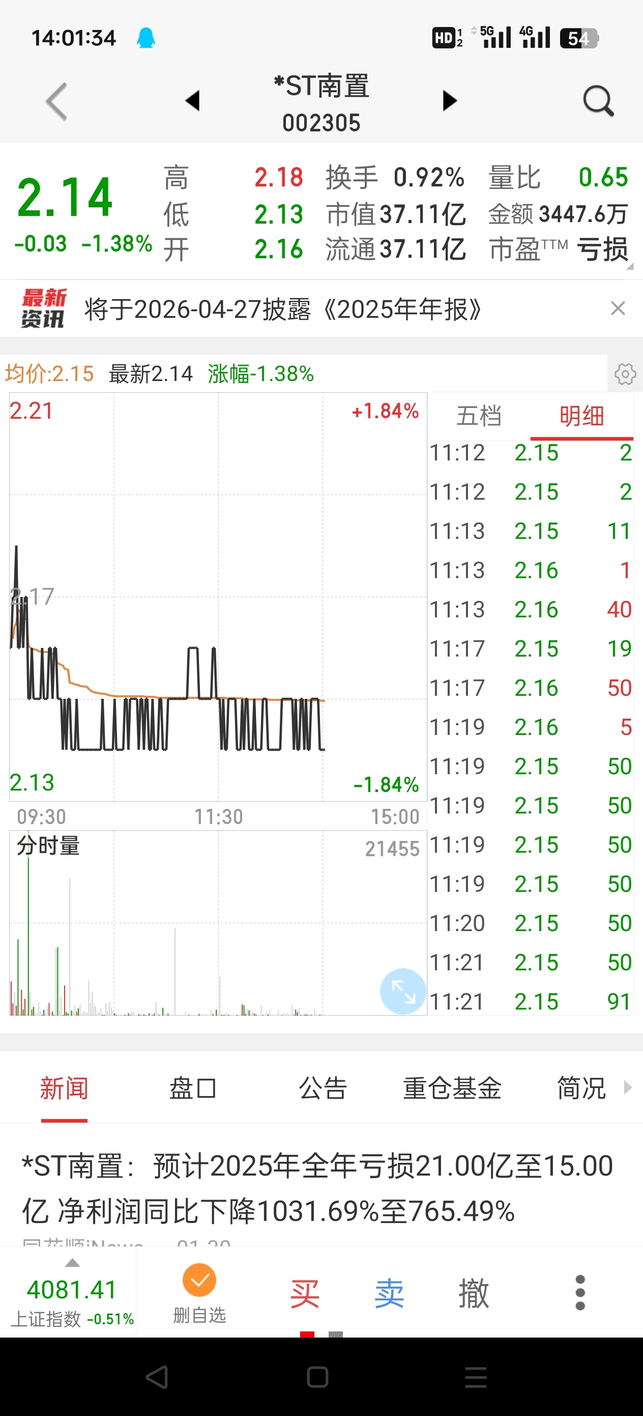 $*ST南置(SZ002305)$ 连续三分钟没有成交,僵尸股了,大家快卖,我在12给你们接盘