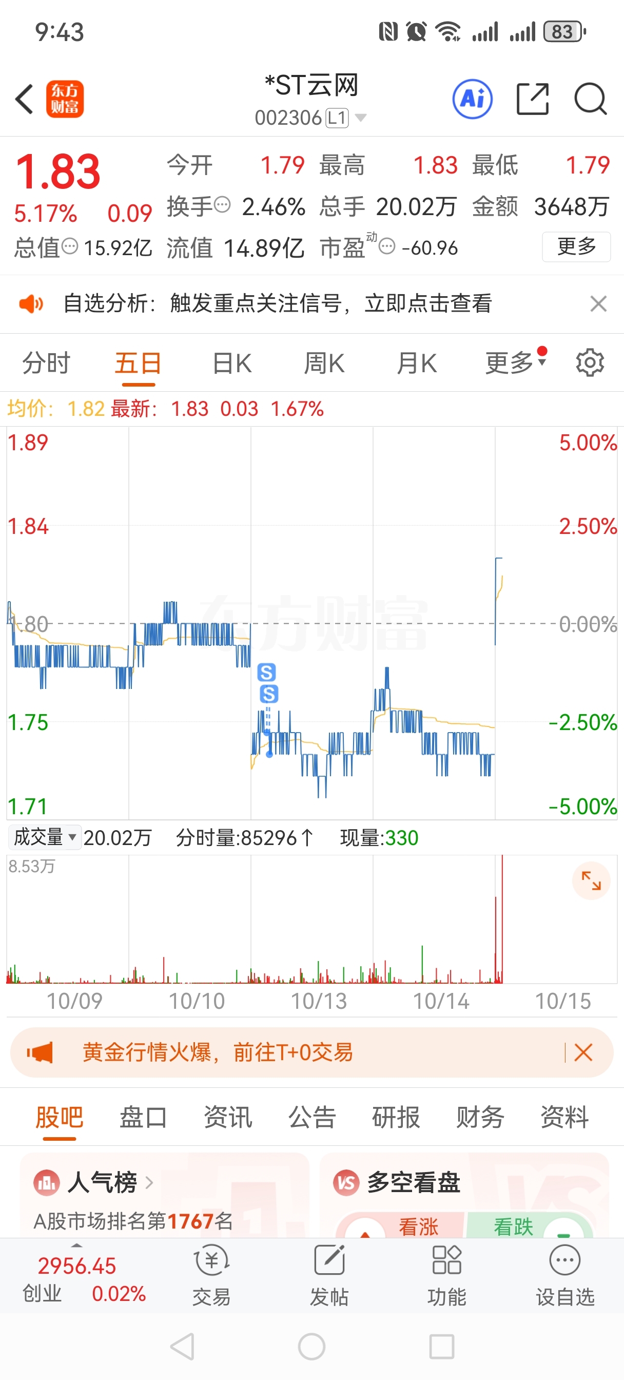 $*ST云网(SZ002306)$ 真战绩可查,每卖完一个。一个就涨停。三四次了。666反向标了