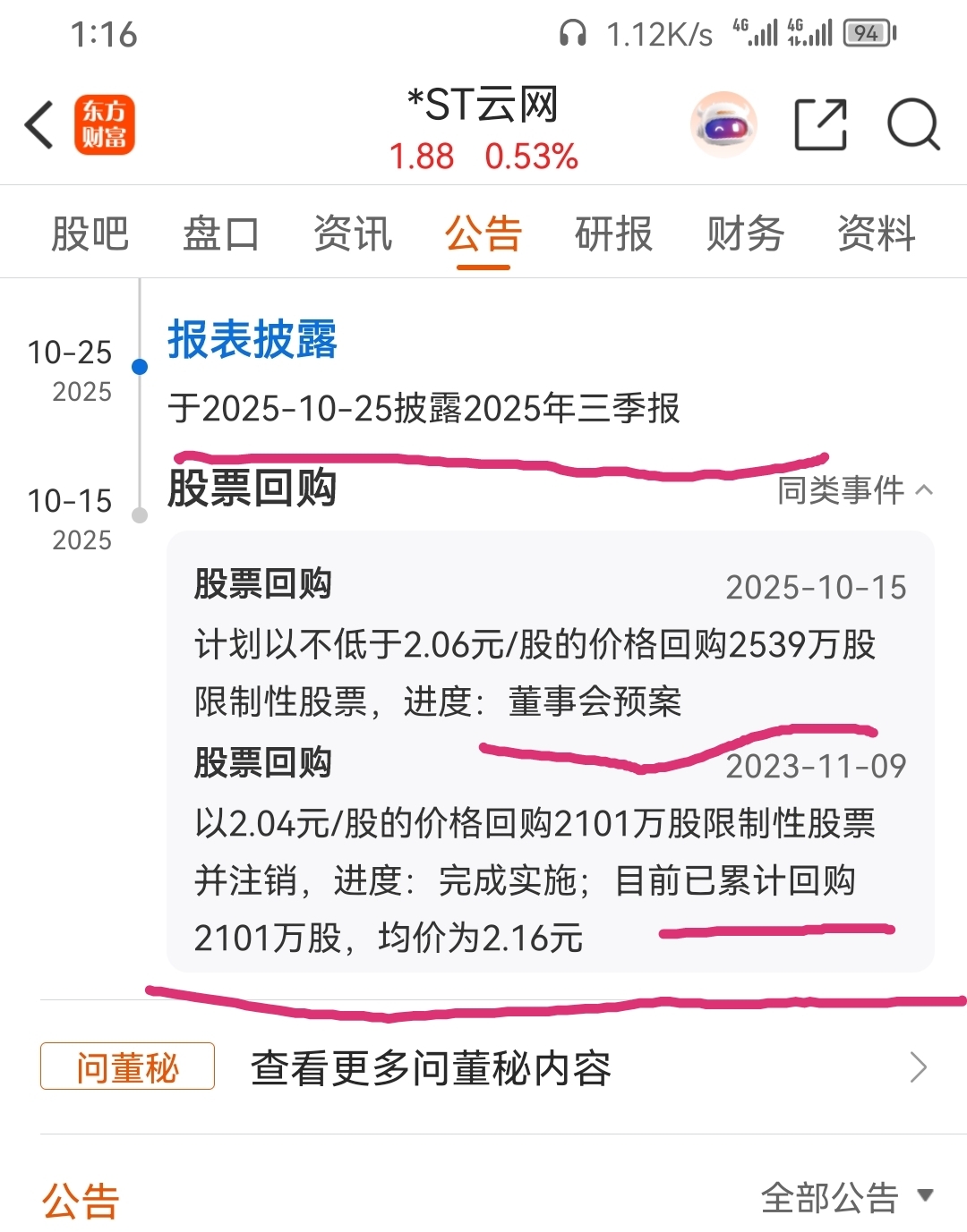中科云网准备重组摘帽已经回购4000万元!!拟回购5200万元!!近亿元的回购.