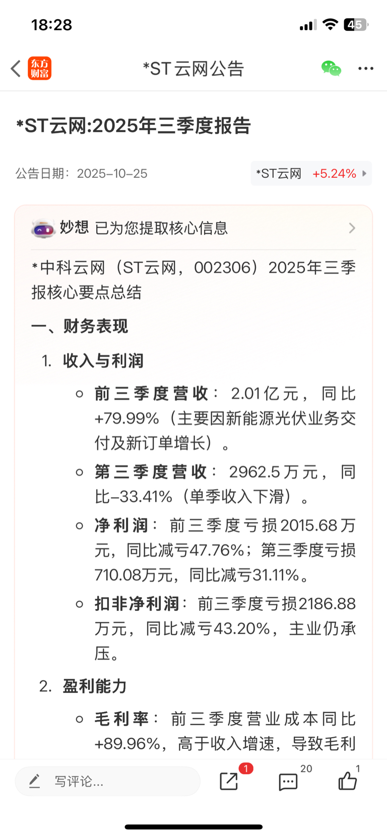 $*ST云网(SZ002306)$ 我问问空狗们,这业绩差吗?同比环比都有增加,光伏业绩也在增加。搞不懂空狗乱叫什么