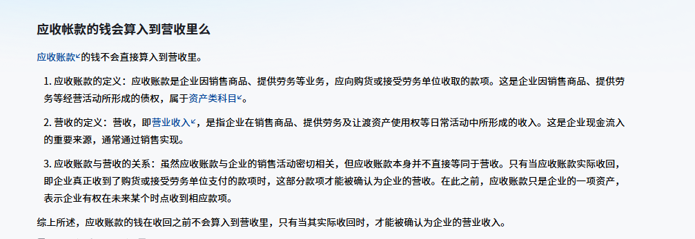 不要给唱口的带偏了-----应收账款不是计入营收的,只有当应收账款实际收回,即企业真正收到了购货或接受劳务单位支付的款项时,这部分款项才能被确认为企业的营收。