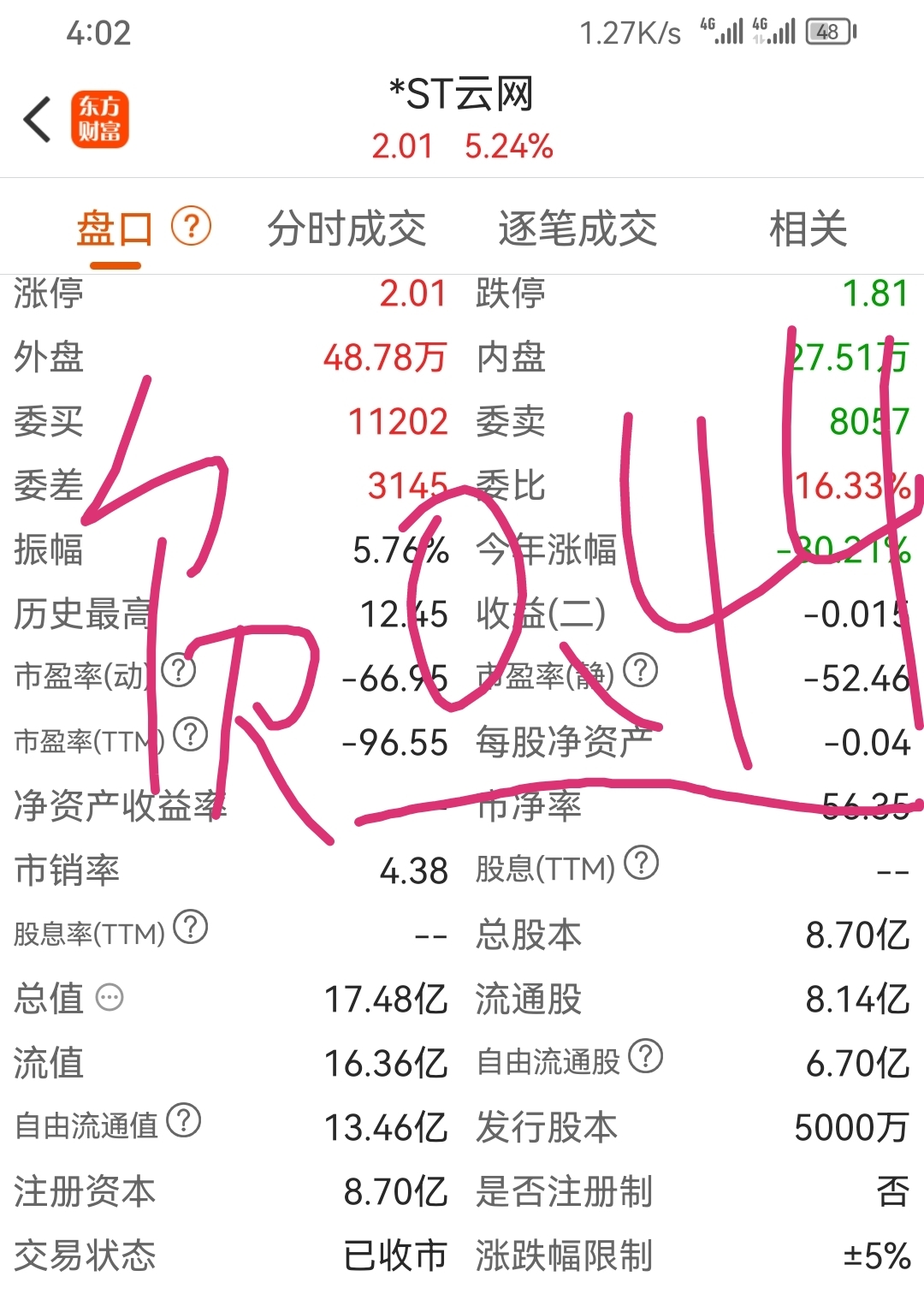 $*ST云网(SZ002306)$ 云网续亏净资产无法转正抬走了$*ST岩石(SH600696)$ 净资产正0.99元,5亿酱香酒库存,越放越值钱