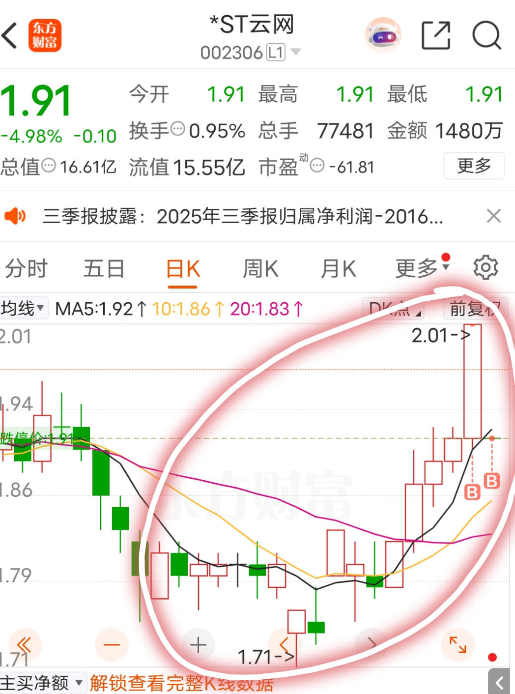$*ST云网(SZ002306)$ 最近回购利好,这么多红柱在1.7以上。不退市的情况下,应该不会跌破1.7元。正常情况下,明日应该会低开高走。几元的sT很多还没云网业绩好,应该不会出事。跌破1.7就可能出大事,散户跑得差不多了。