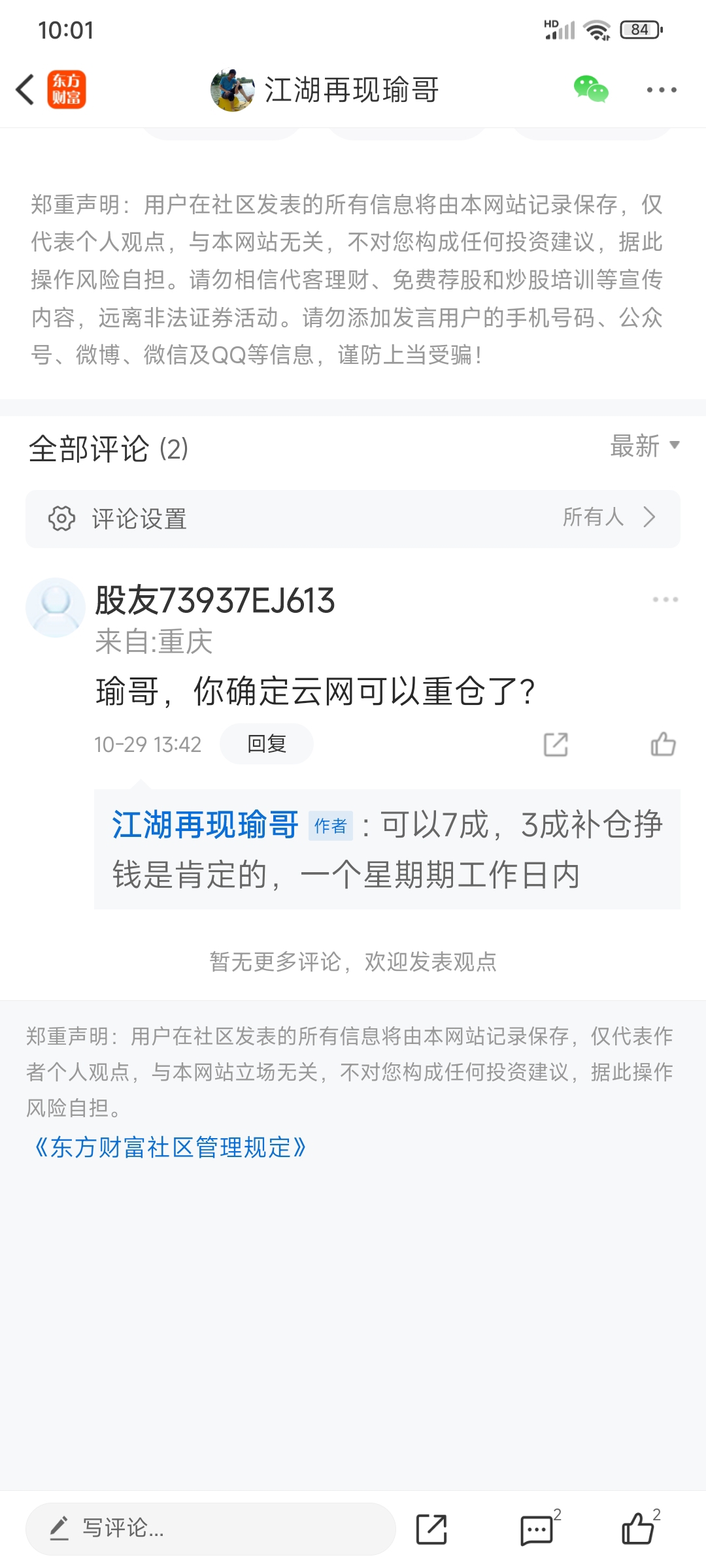 温馨提示: 1.根据《证券法》规定,禁止编造、传播虚假信息或者误导性信息,扰乱证券市场;2.用户在本社区发表的所有资料、言论等仅代表个人观点,与本网站立场无关,不对您构成任何投资建议。用户应基于自己的独立判断,自行决定证券投资并承担相应风险。《东方财富社区管理规定》